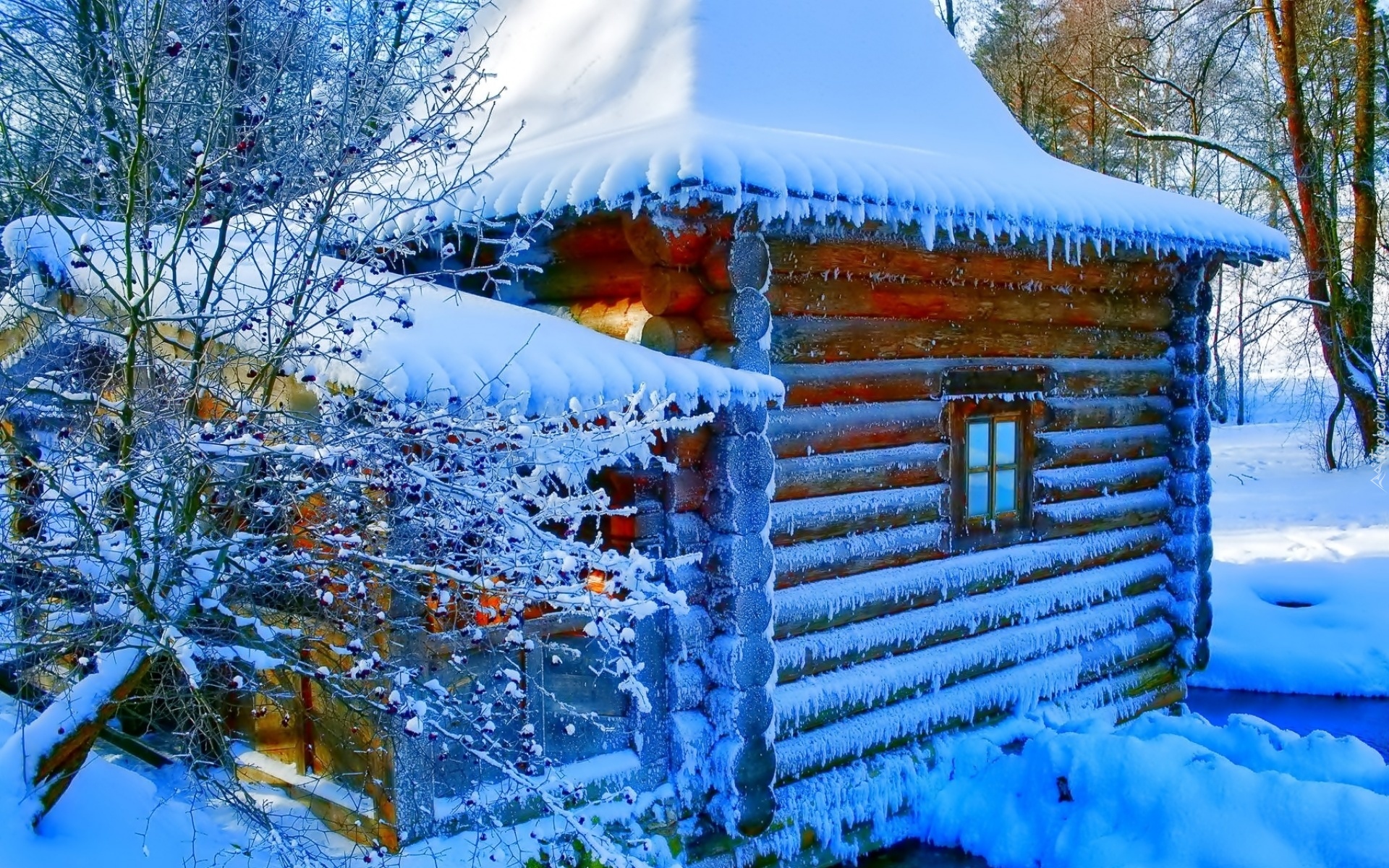 Edytor tapety: Drewniany, Dom, W, Lesie, Drzewa, Zima