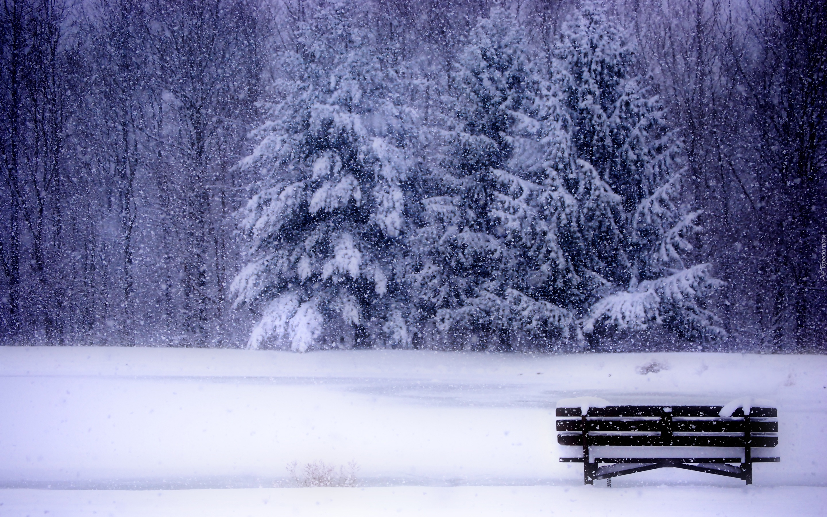 Edytor tapety: Zima, Świerki, Ławka, Park