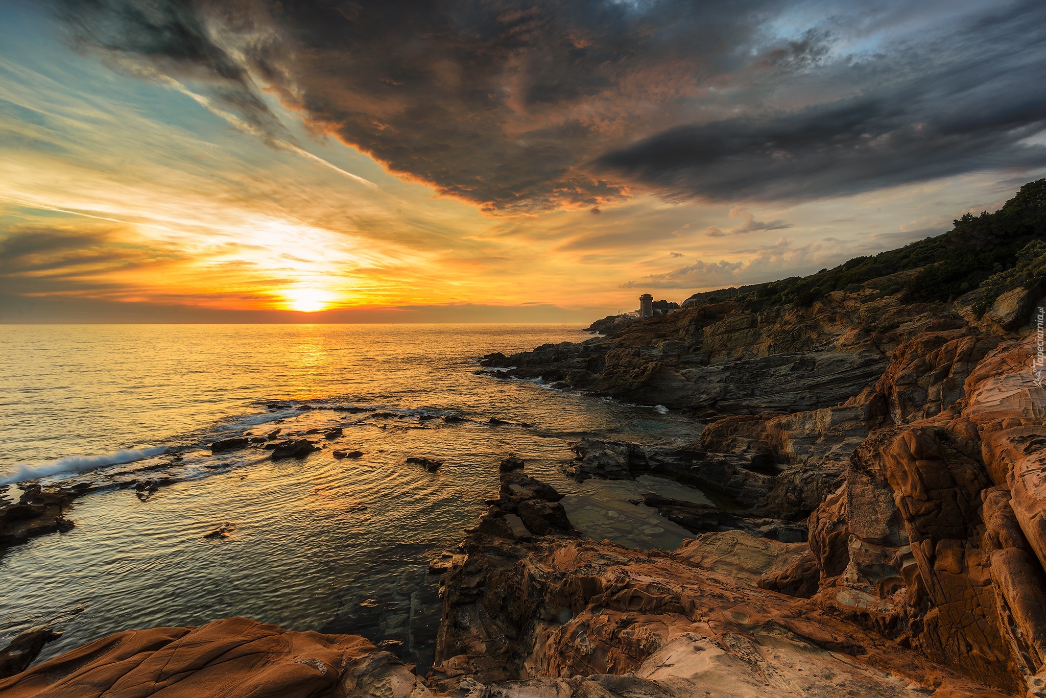Edytor tapety: Włochy, Zachód słońca, Wybrzeże