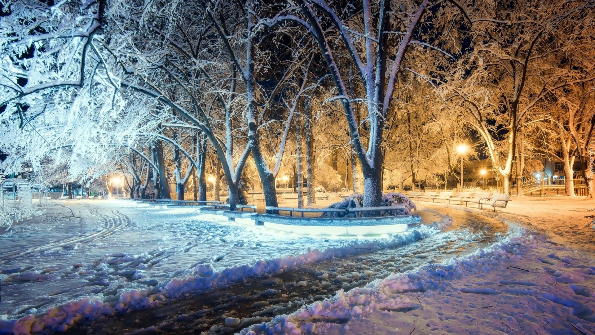 Edytor tapety: Park, Drzewa, Alejki, Latarnie, Zima