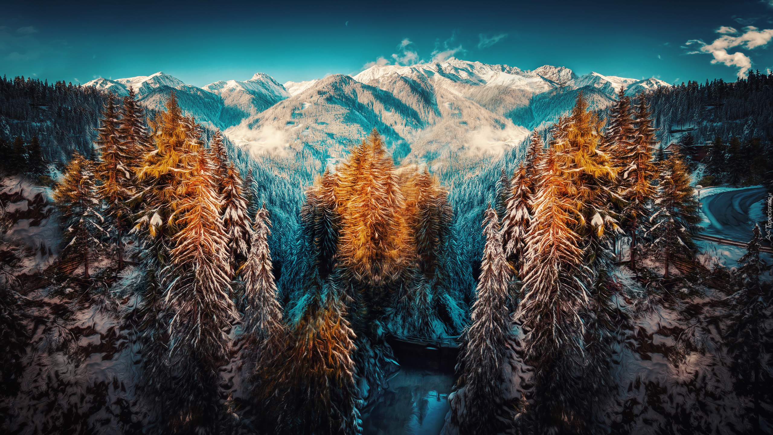 Edytor tapety: Zima, Śnieg, Góry, Drzewa