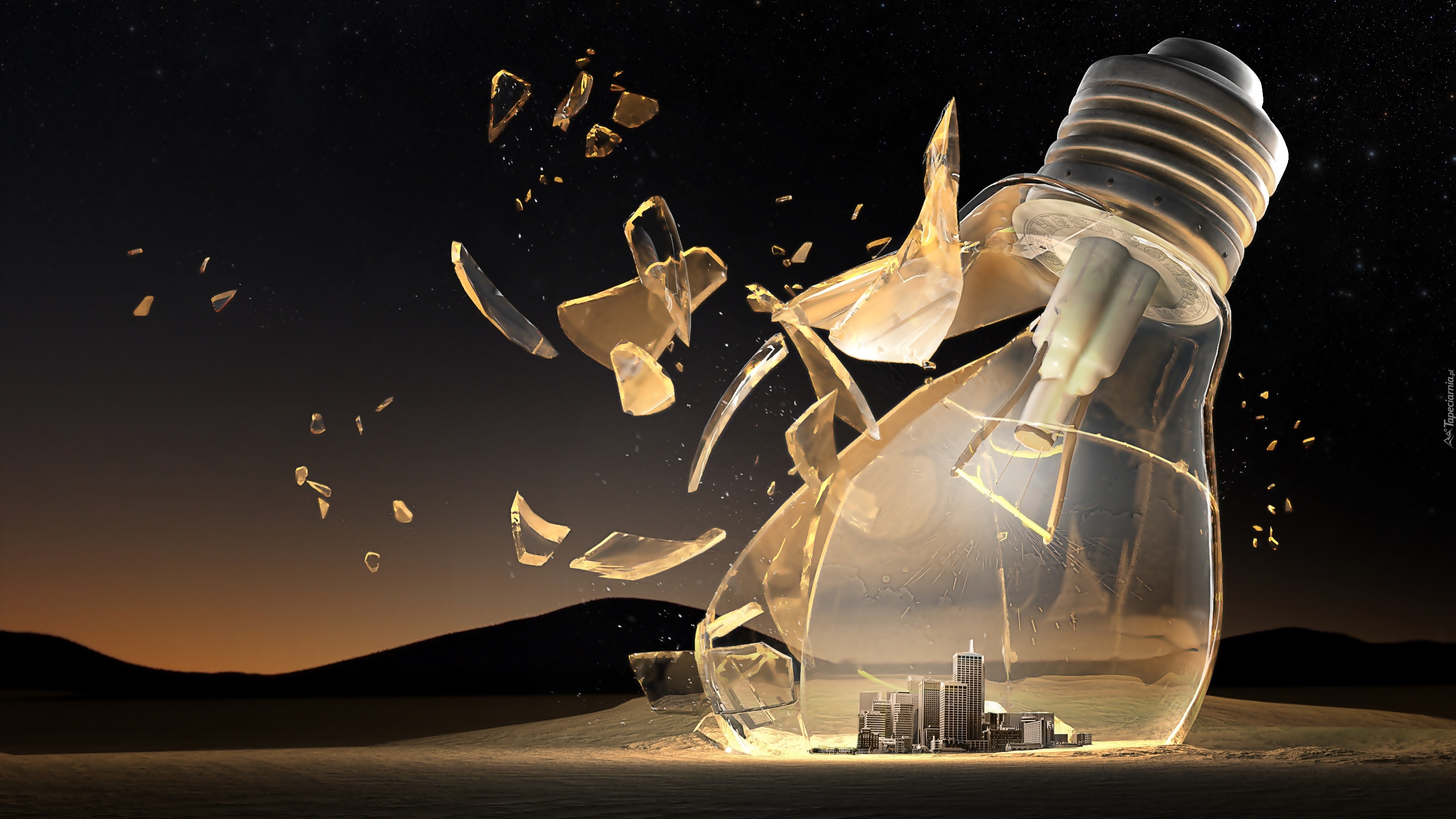 Edytor tapety: Żarówka, Miasto, Szkło, Góry, Abstrakcja