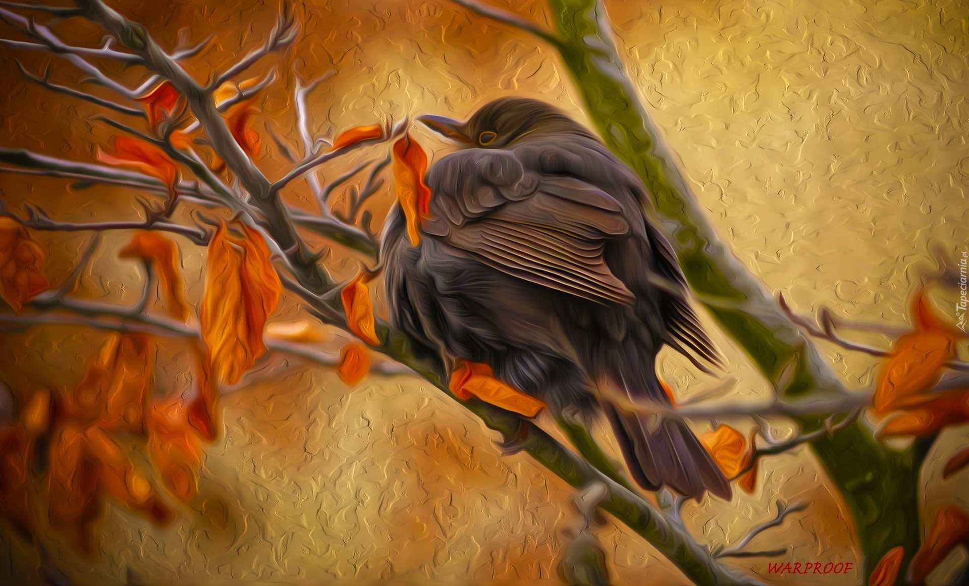 Edytor tapety: Grafika, Paintography, Ptak, Kos, Gałązki