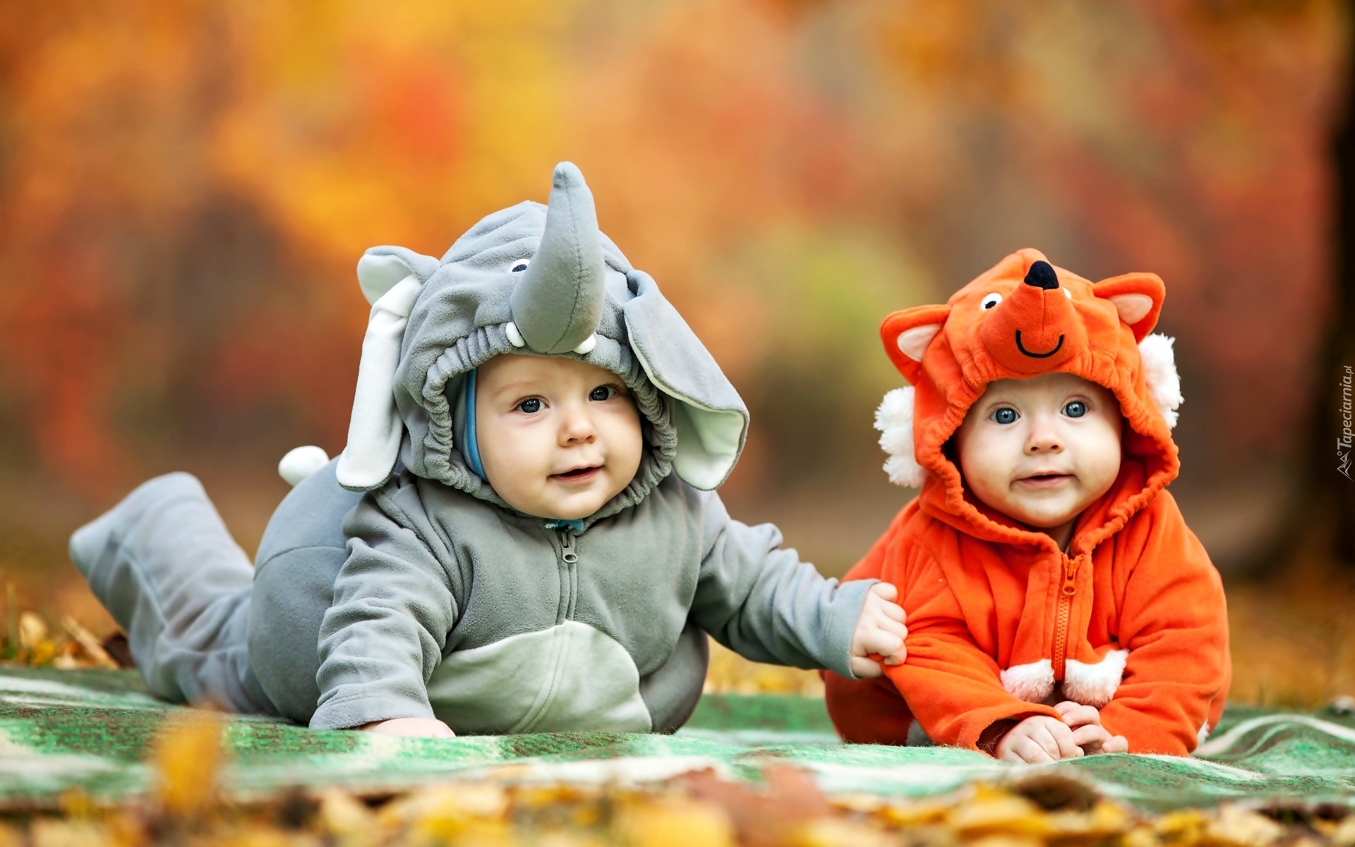 Edytor tapety: Leżące, Dwoje Dzieci, Kombinezony