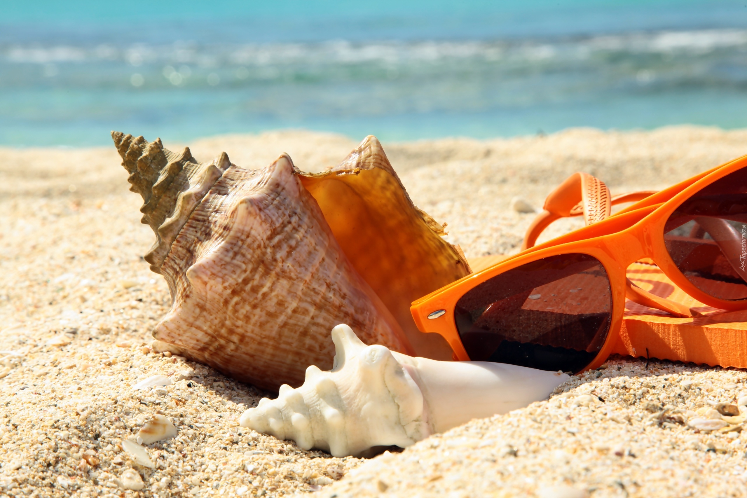 Edytor tapety: Lato, Morze, Plaża, Muszle, Okulary