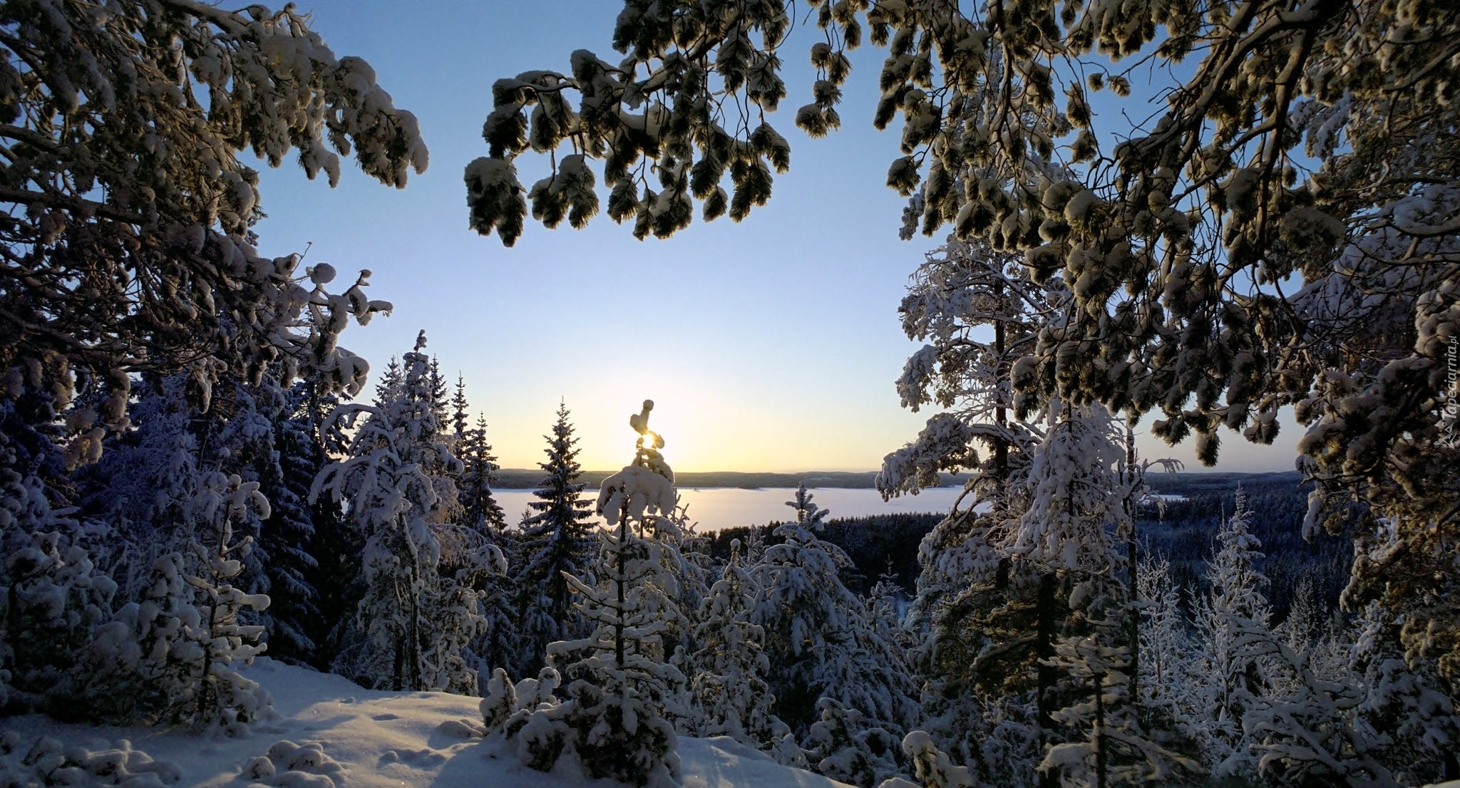 Edytor tapety: Zima, Drzewa, Śnieg, Jezioro