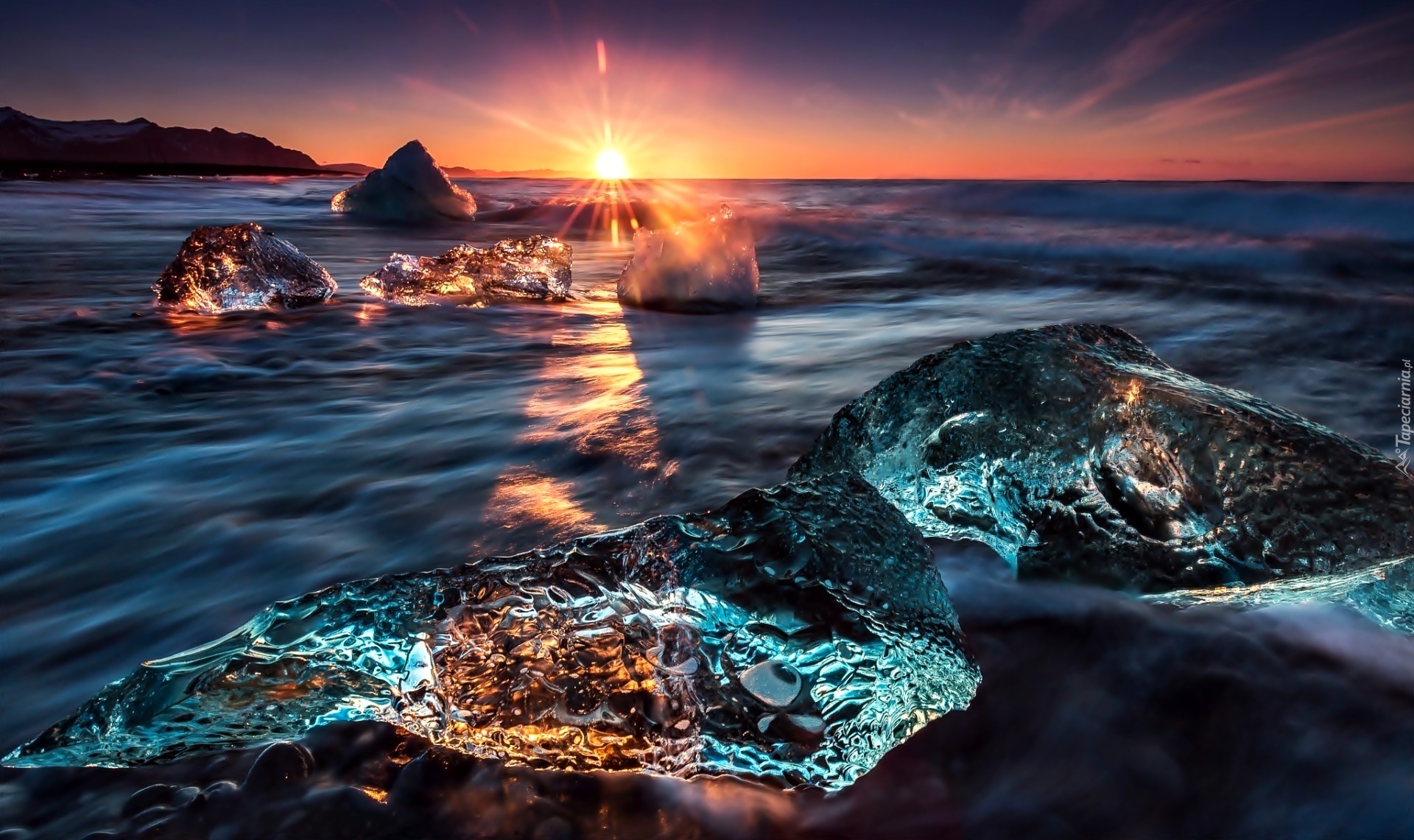 Edytor tapety: Islandia, Morze, Zachód Słońca, Lody, Laguny