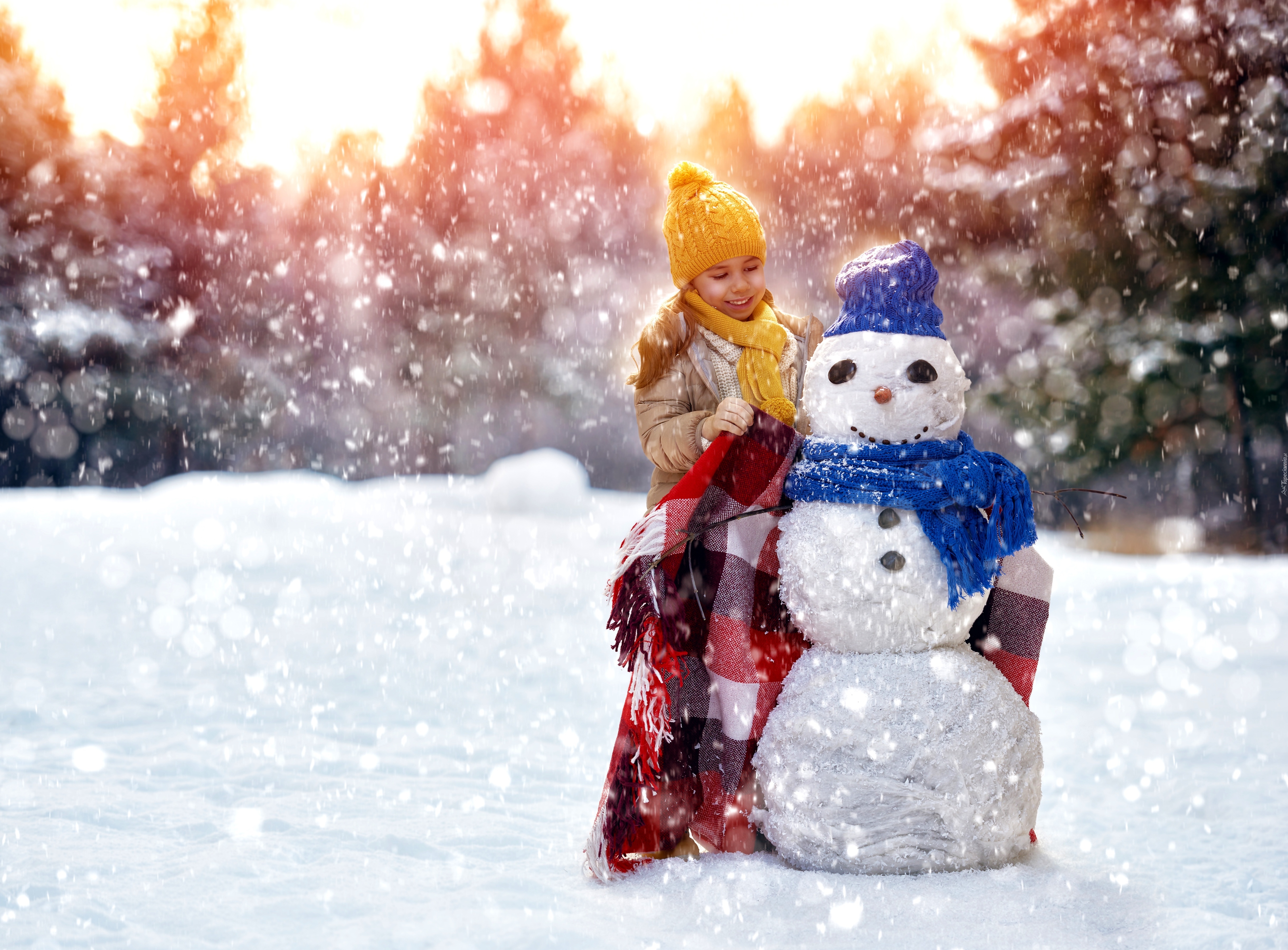 Edytor tapety: Zima, Bałwan, Dziewczynka