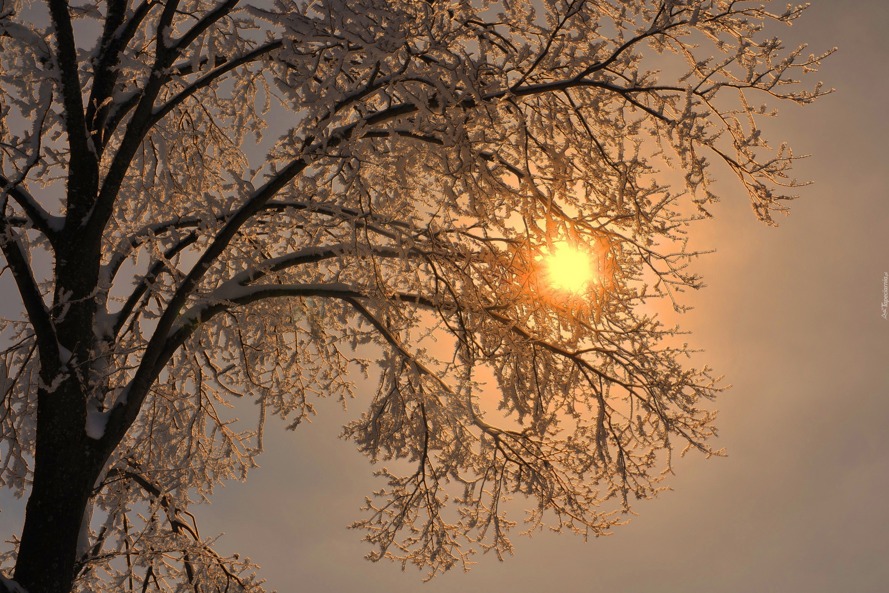 Edytor tapety: Zima, Świt, Drzewo, Śnieg
