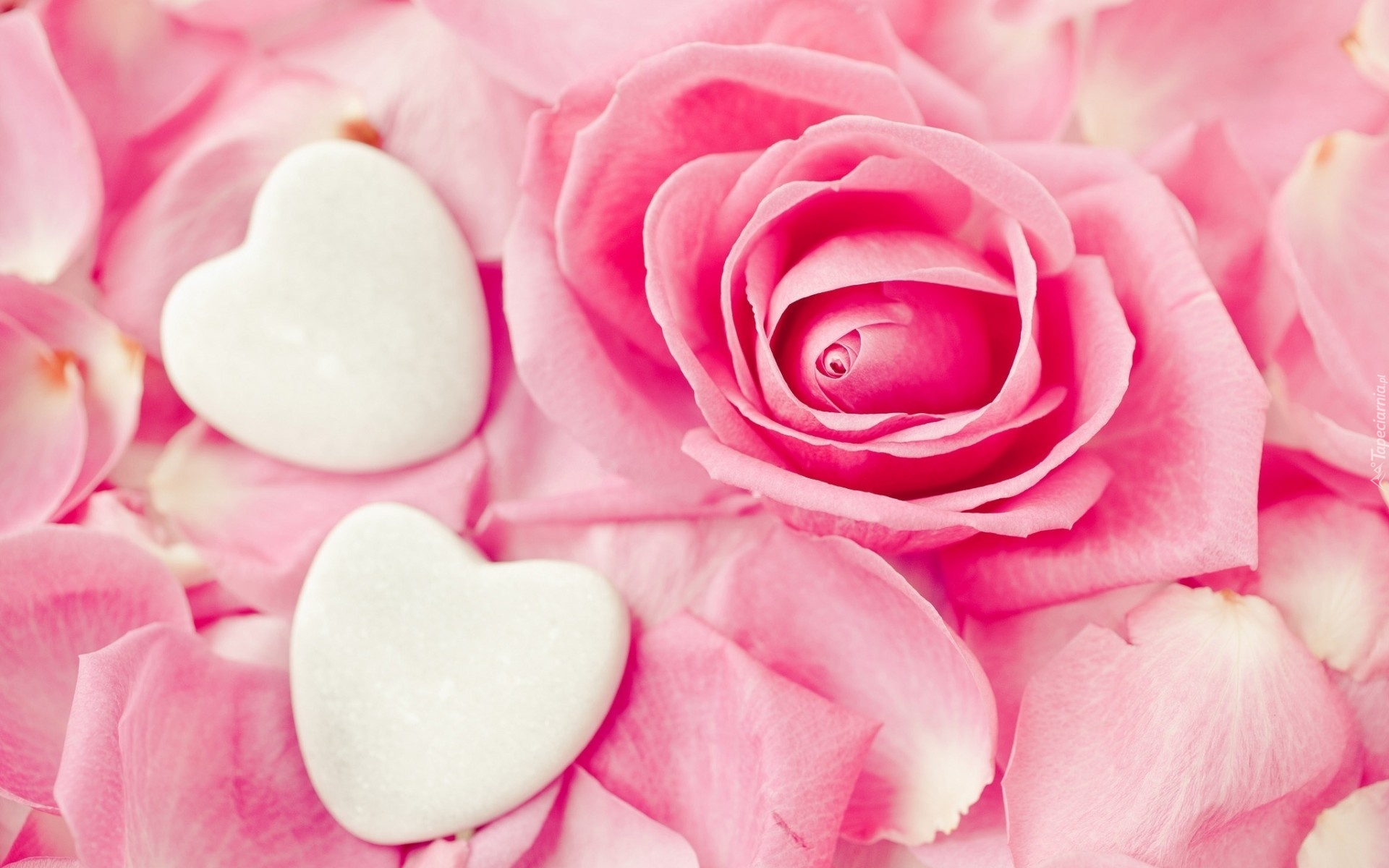 Edytor tapety: Walentynki, Róża, Serca, Płatki