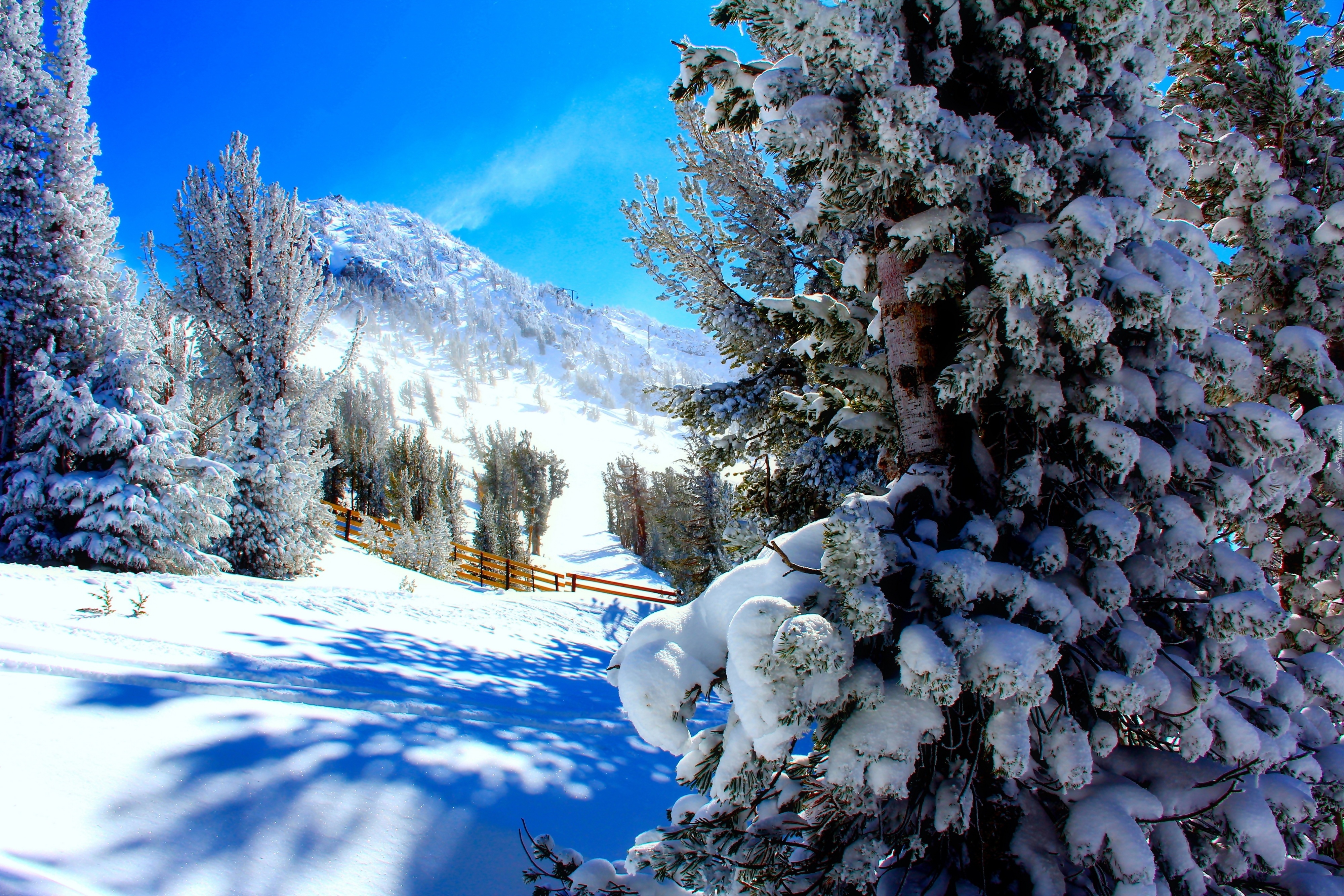 Edytor tapety: Góry, Lasy, Drzewa, Ogrodzenie, Zima