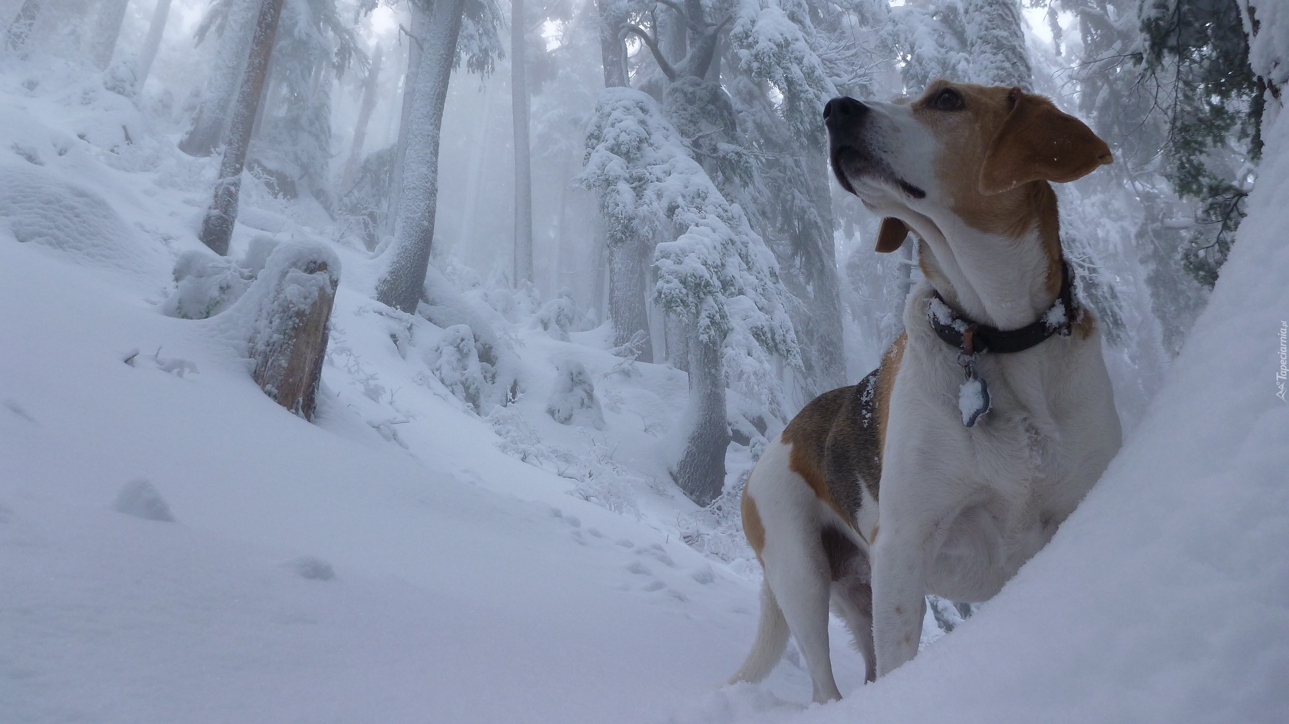 Edytor tapety: Beagle, Zima, Las