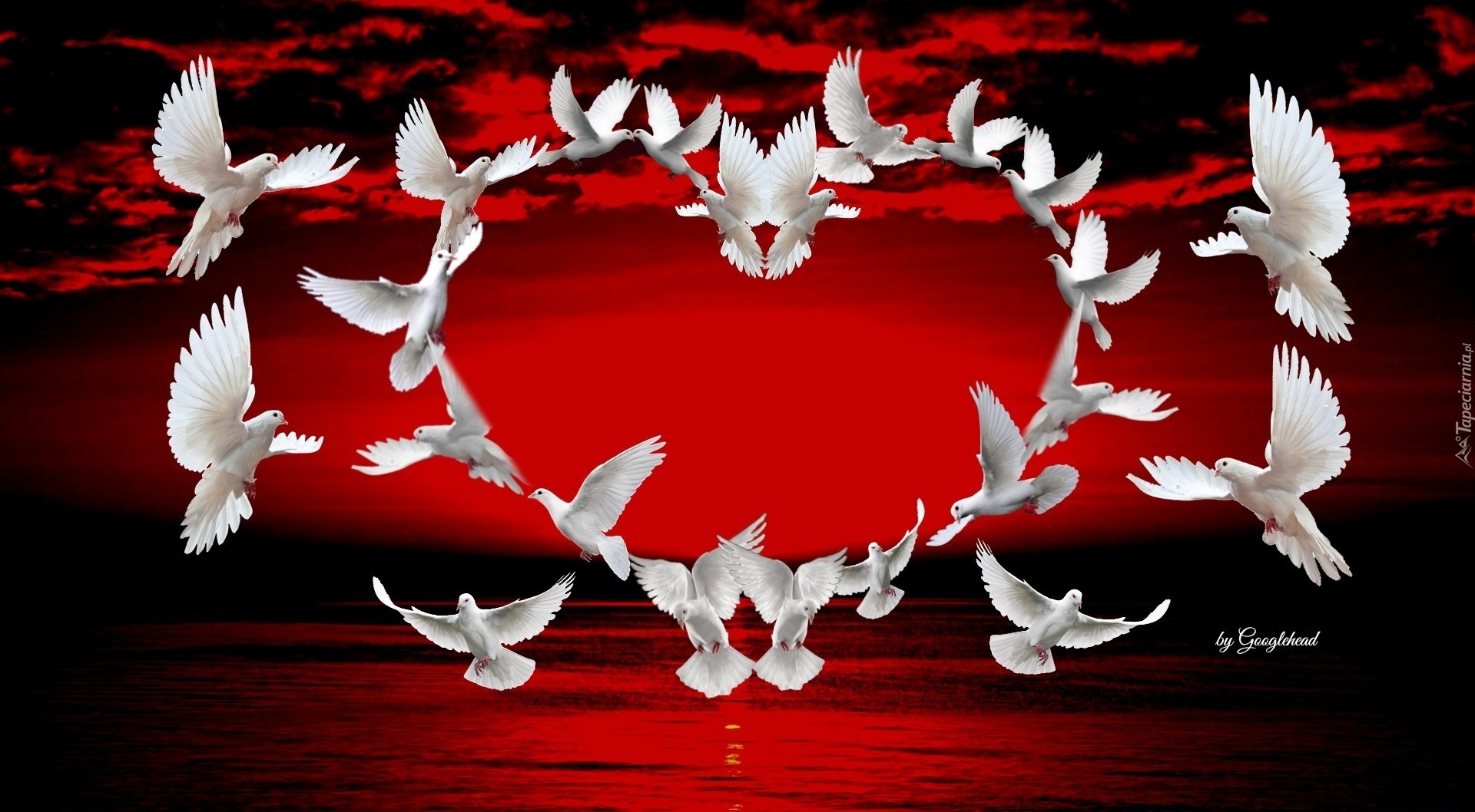 Edytor tapety: Serce, Gołębie, Czerwone, Tło