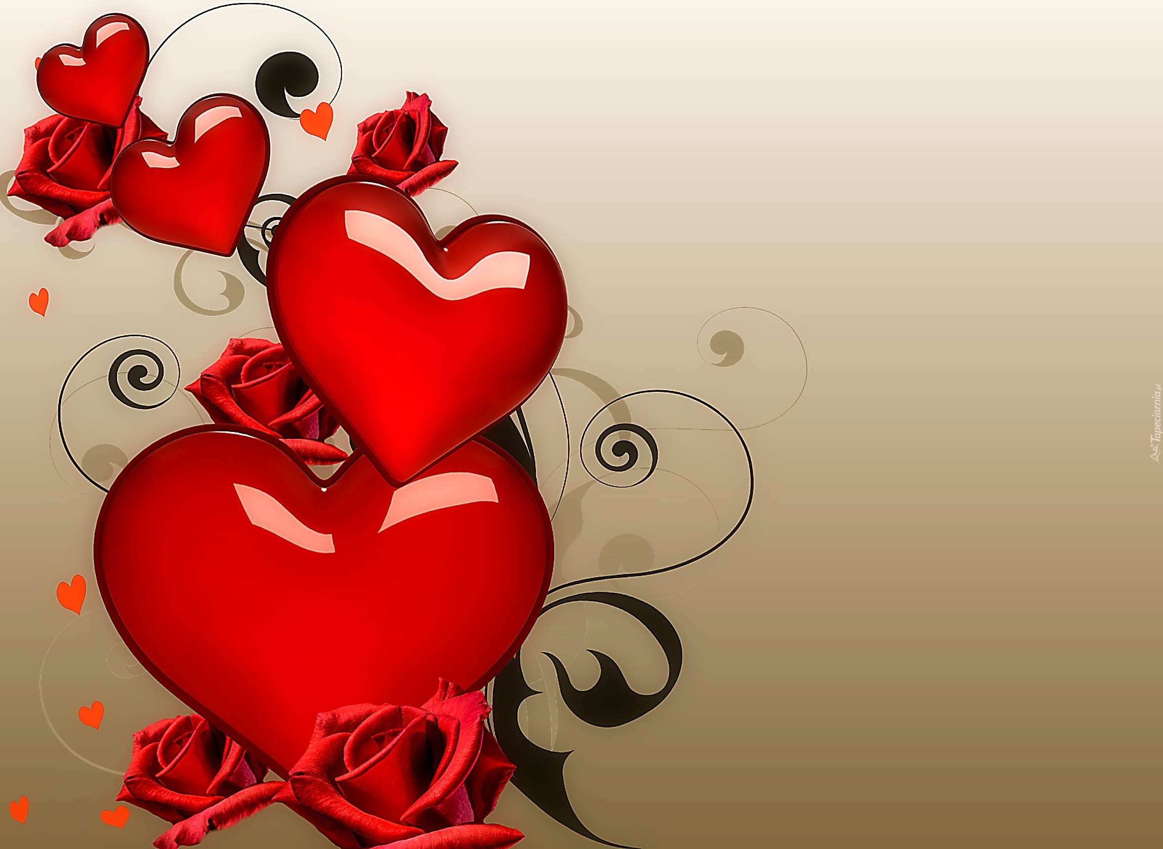 Edytor tapety: Walentynki, Czerwone Serca, Kwiaty