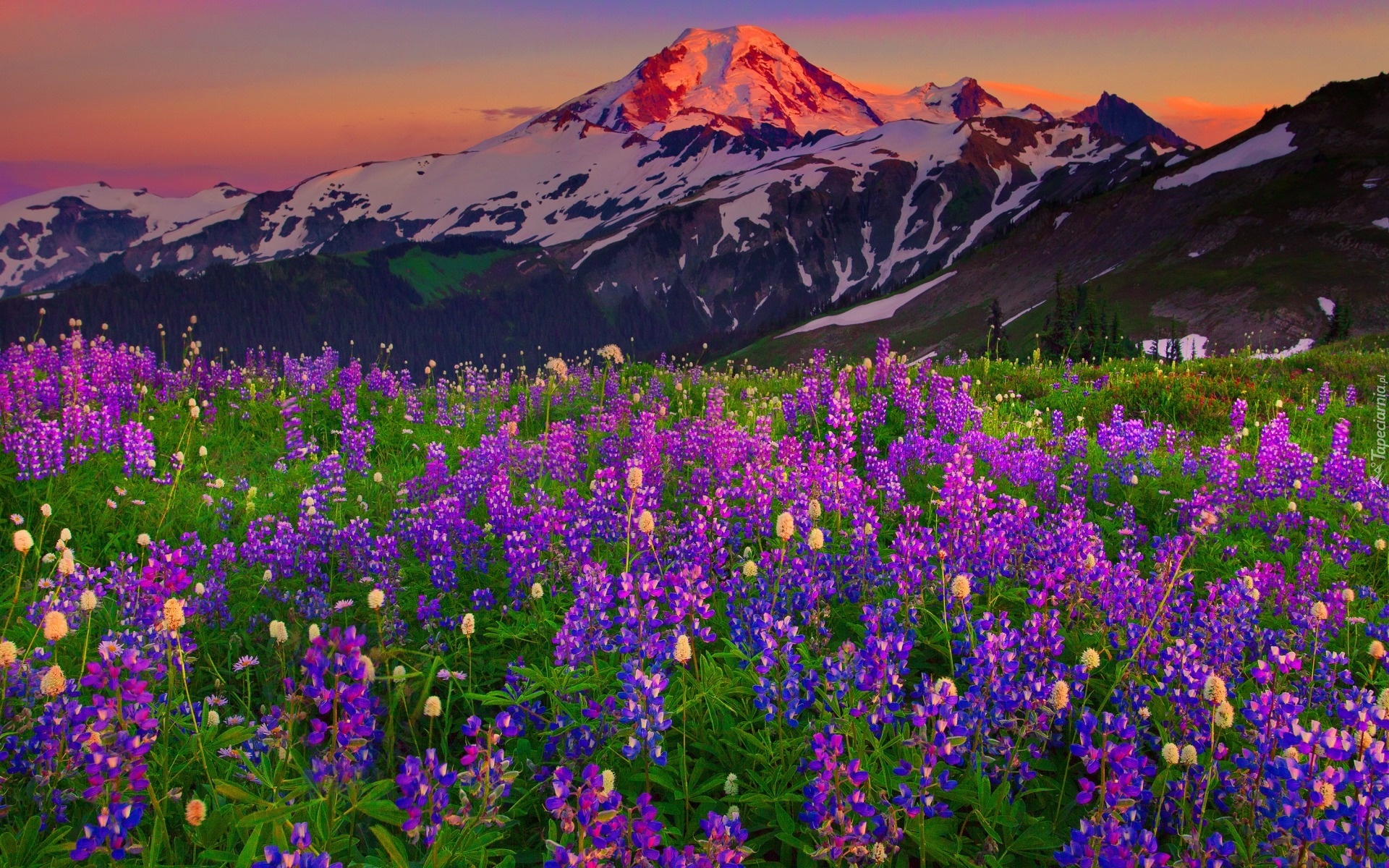 Edytor tapety: Krajobraz, kwiaty górskie, góry