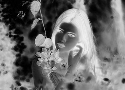 Edytor tapety: Kobieta, Makijaż, Kwitnąca, Gałązka