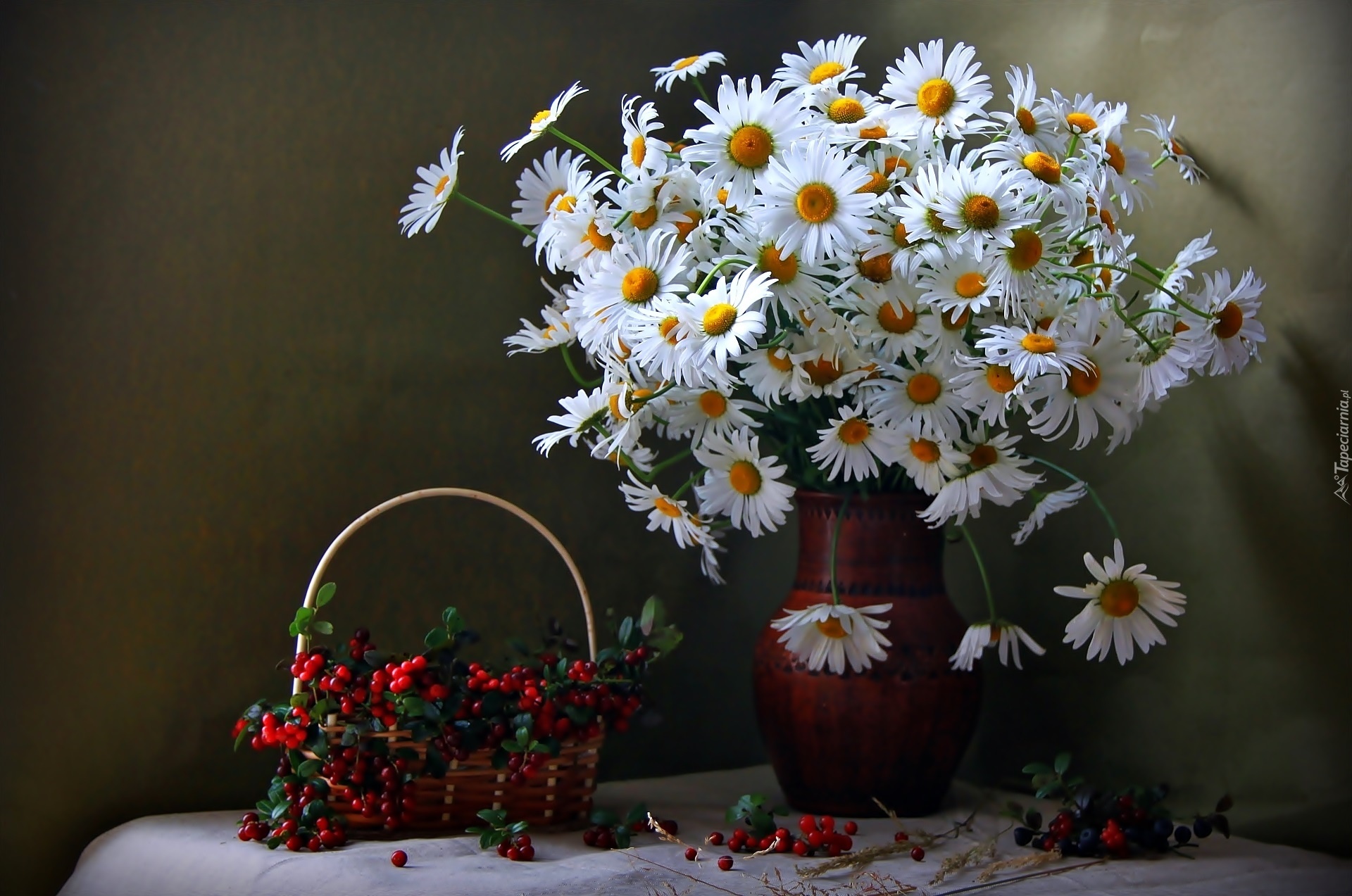 Edytor tapety: Bukiet, Margerytki, Żurawina