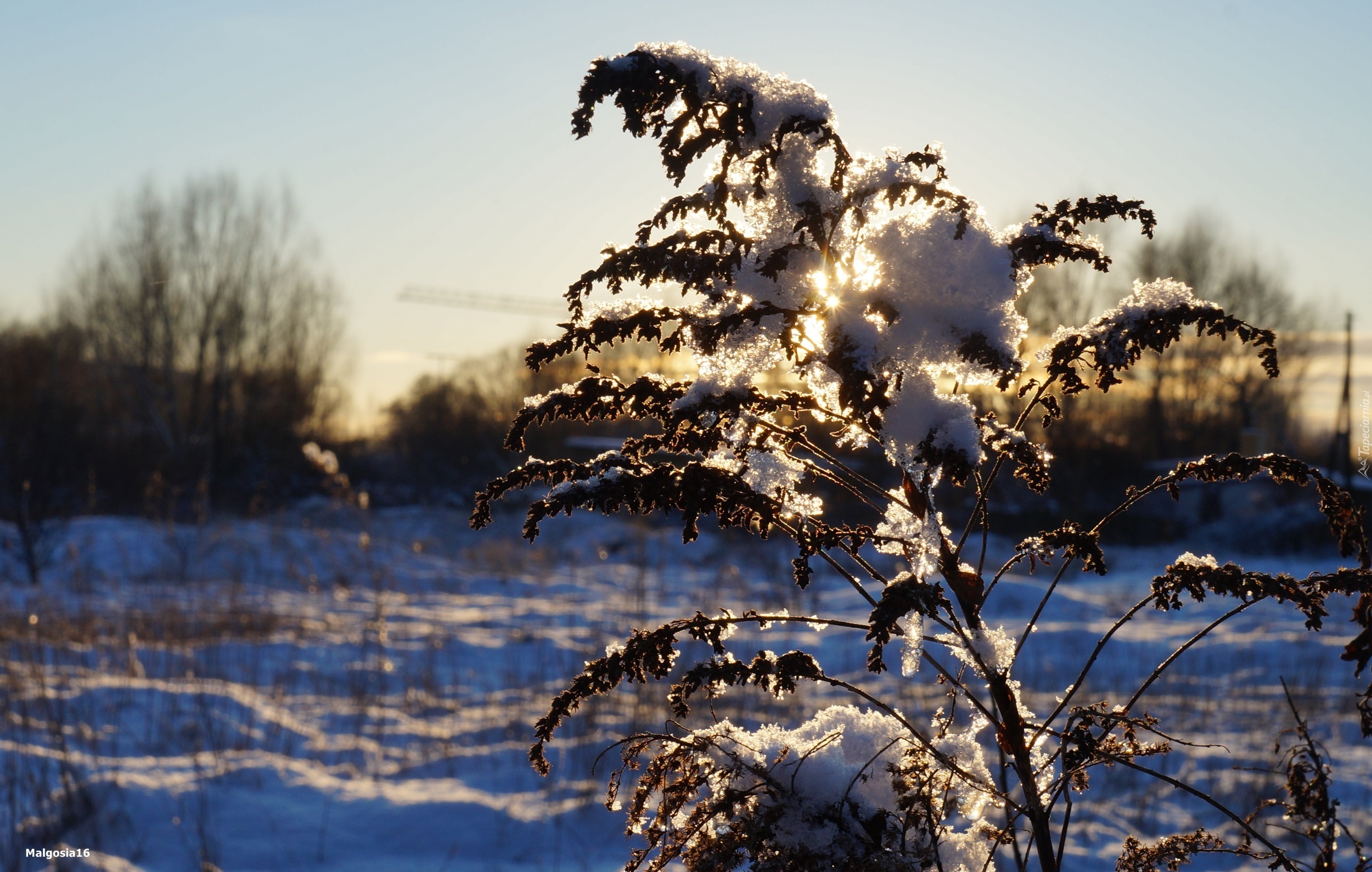 Edytor tapety: Zima, Śnieg, Uschnięta, Roślina, Przebijające, Światło