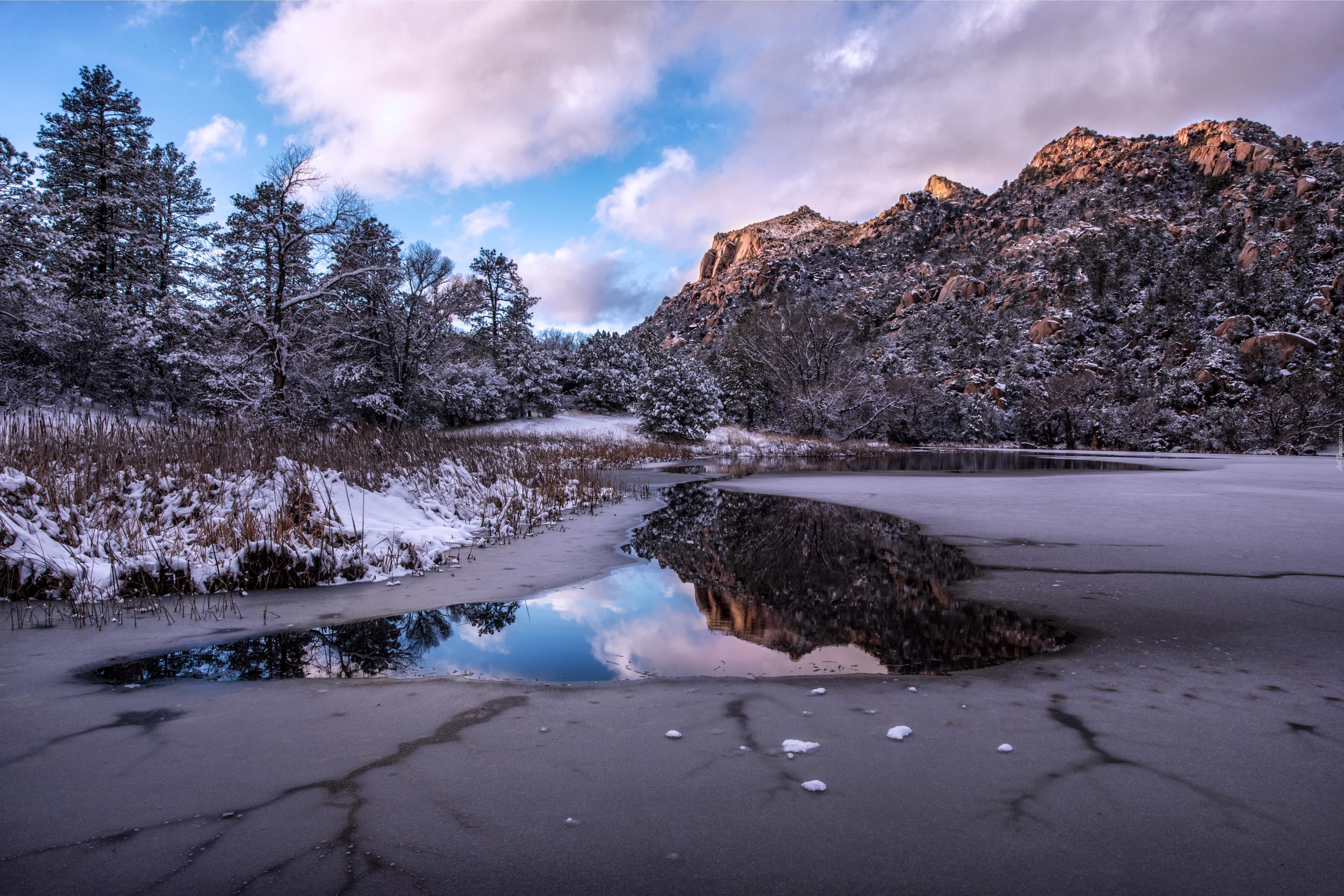 Edytor tapety: Zima, Góry, Jezioro, Las, Obłoki