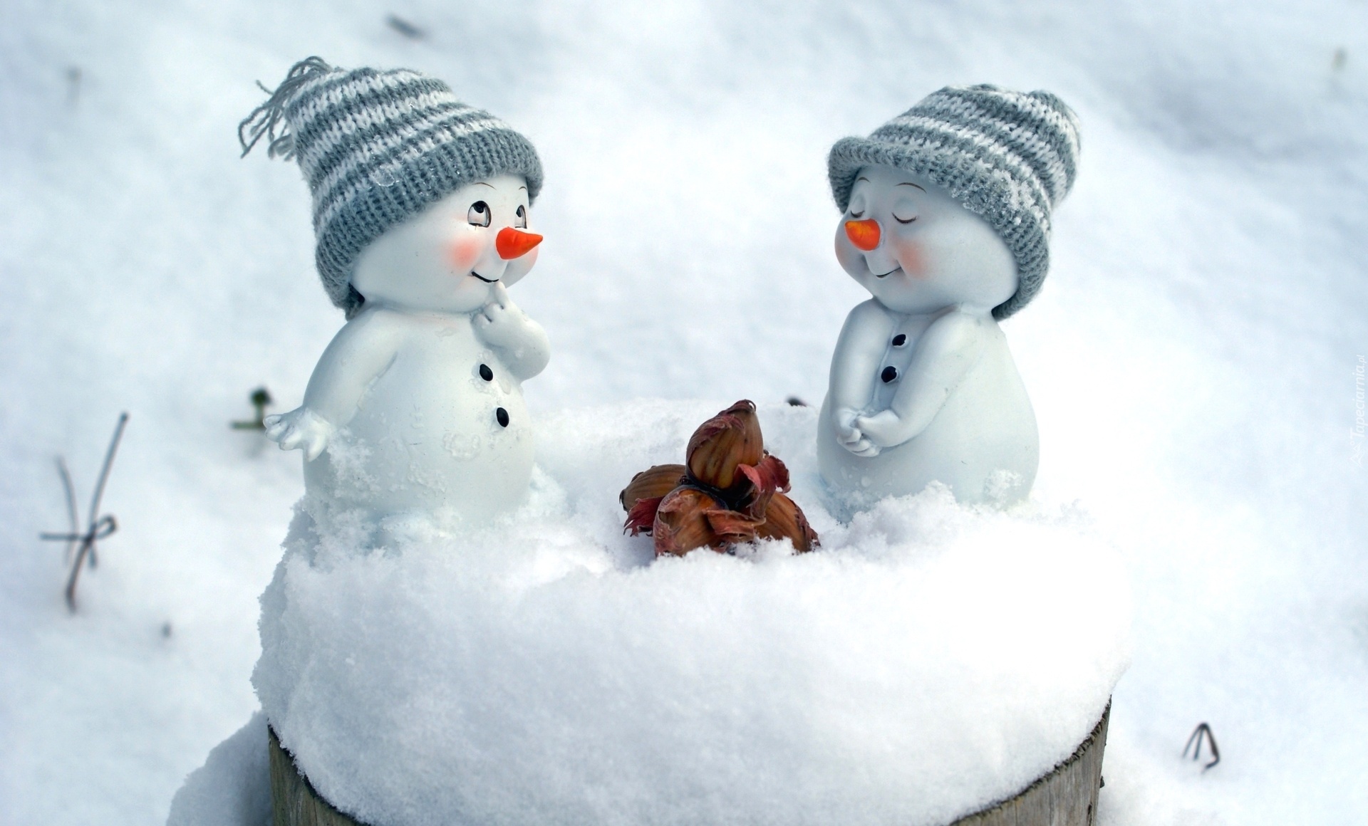Edytor tapety: Śnieg, Bałwanki, Czapeczki