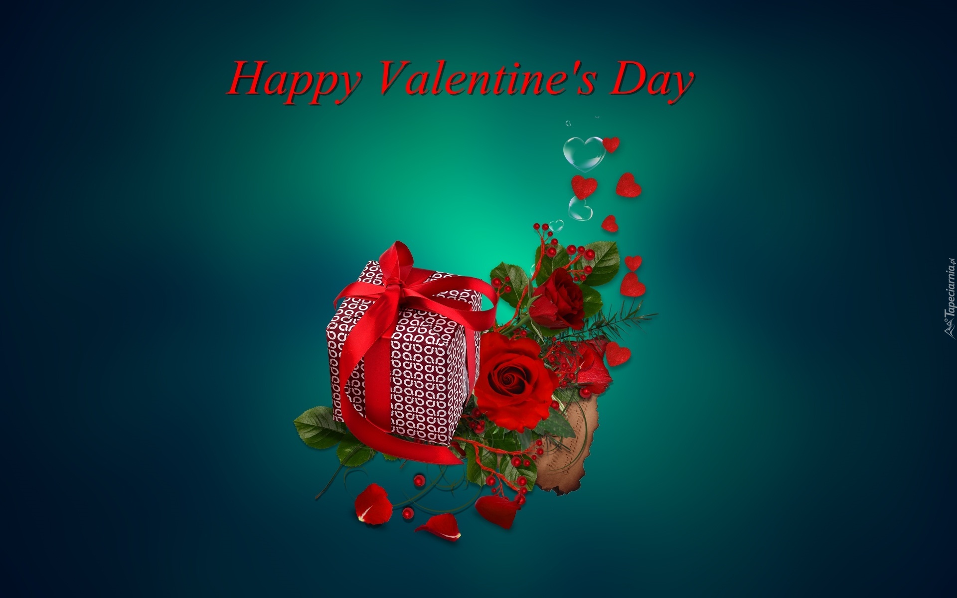 Edytor tapety: Prezent, Kwiaty, Serca, Napis