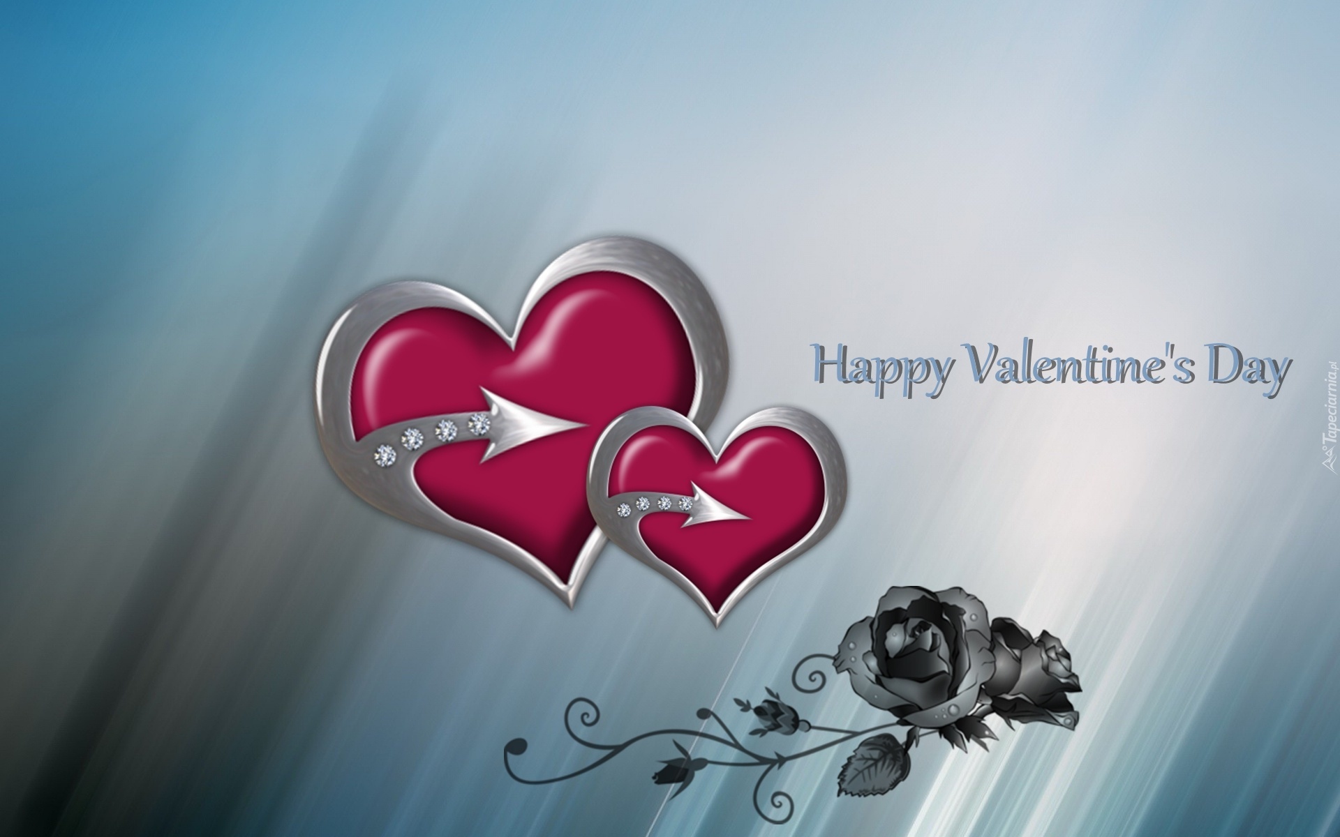 Edytor tapety: Dwa, Serca, Róża, Napis
