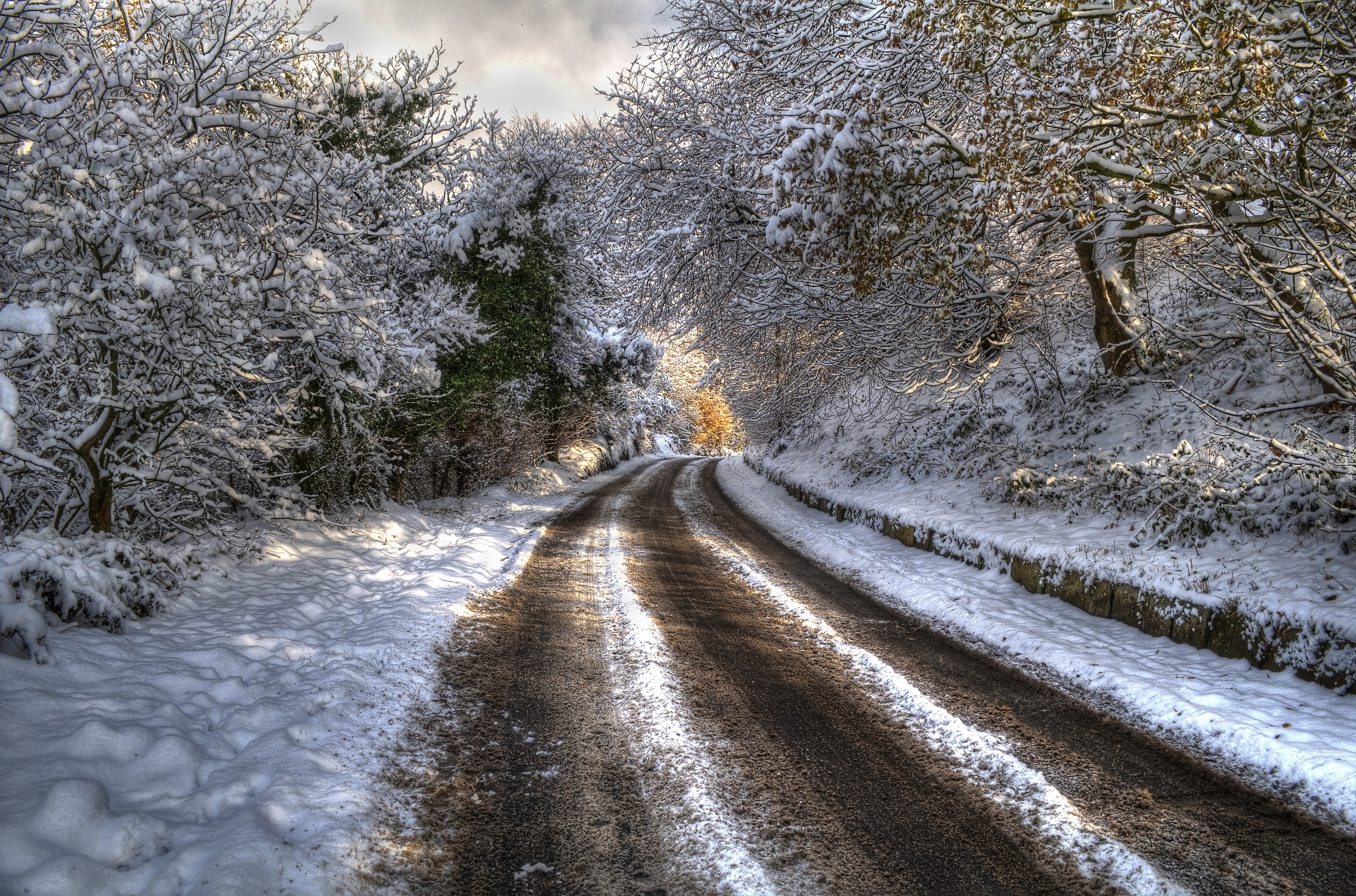 Edytor tapety: Zima, Śnieg, Droga , Las