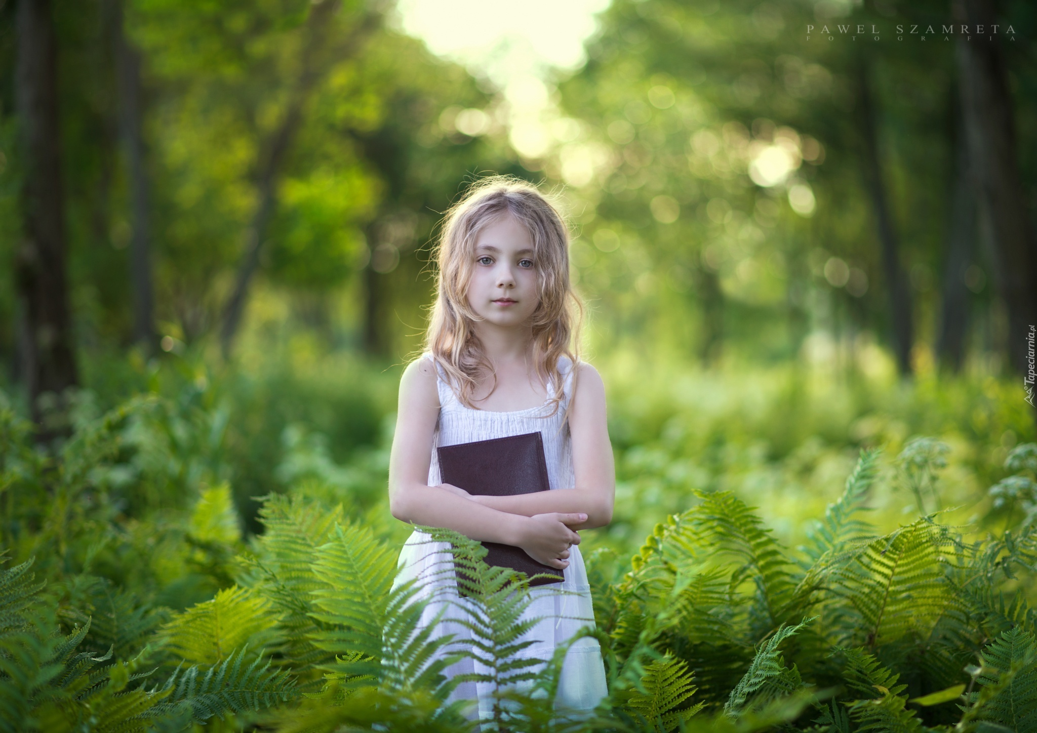 Edytor tapety: Dziewczynka, Książka, Paprocie