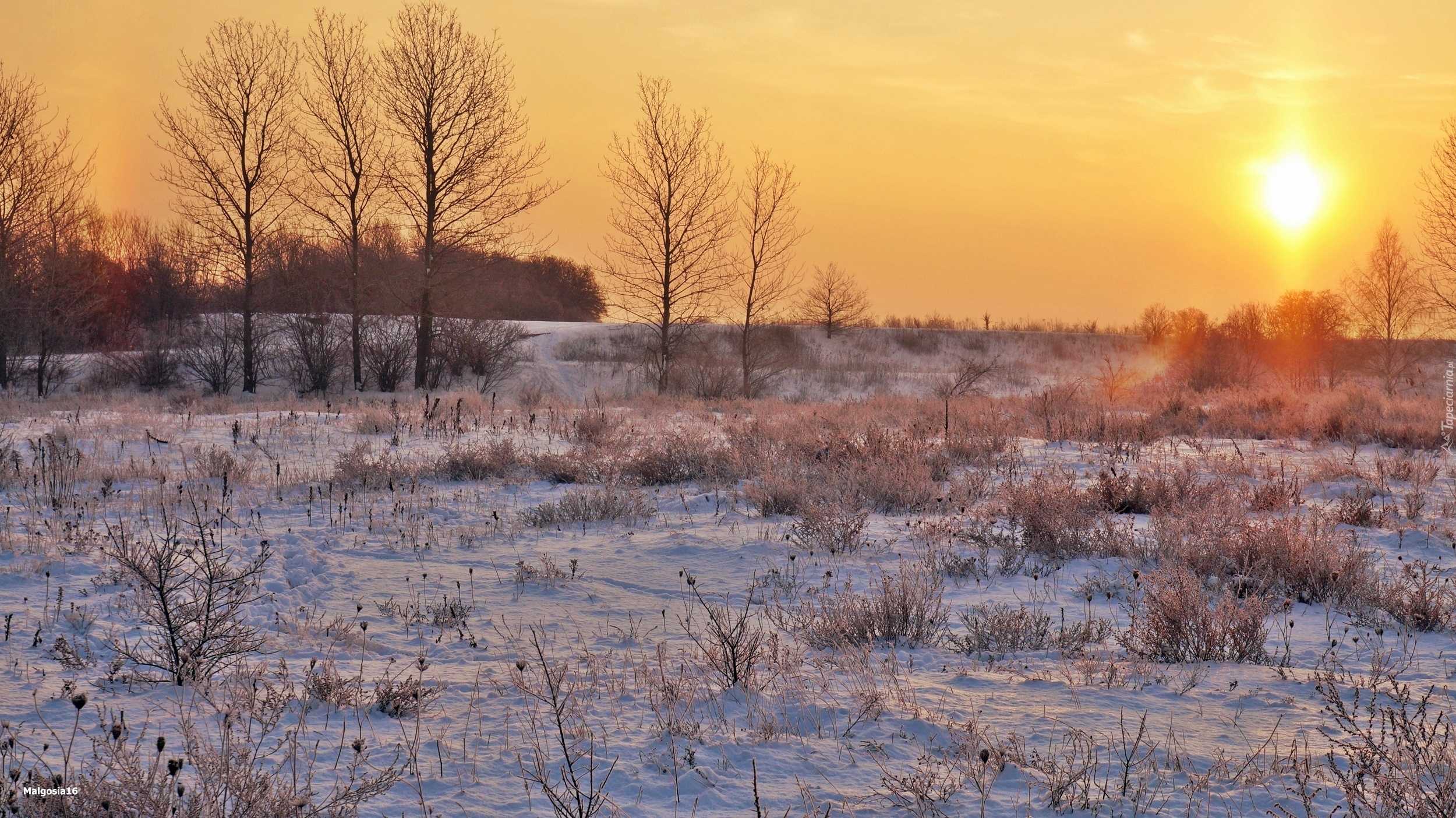 Edytor tapety: Zima, Wschód Słońca, Śnieg, Drzewa