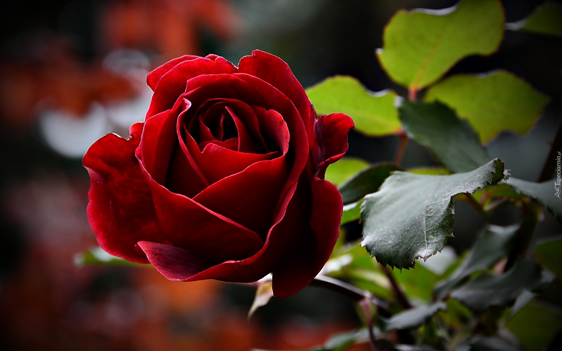 Edytor tapety: Czerwona, Róża, Listki, Rozmycie
