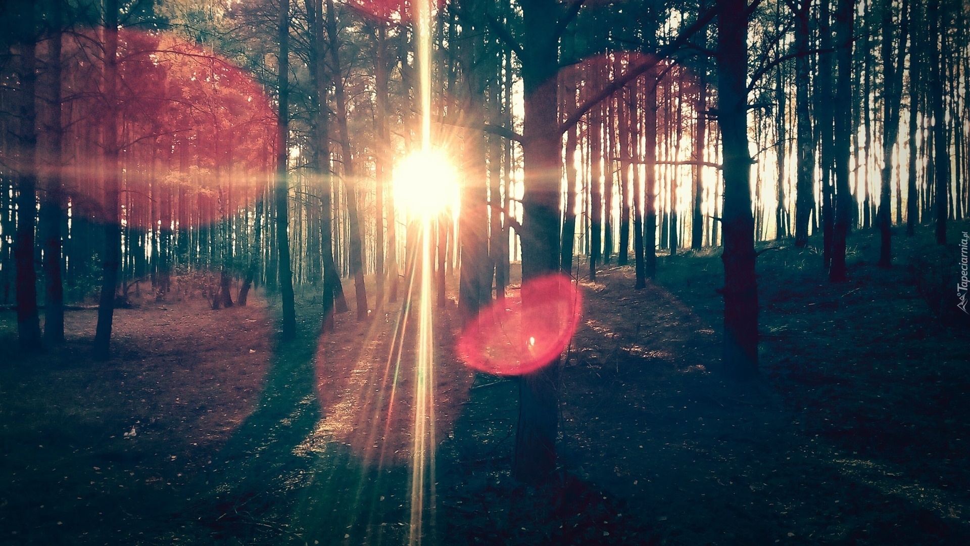 Edytor tapety: Jesień, Las, Promienie, Słońca