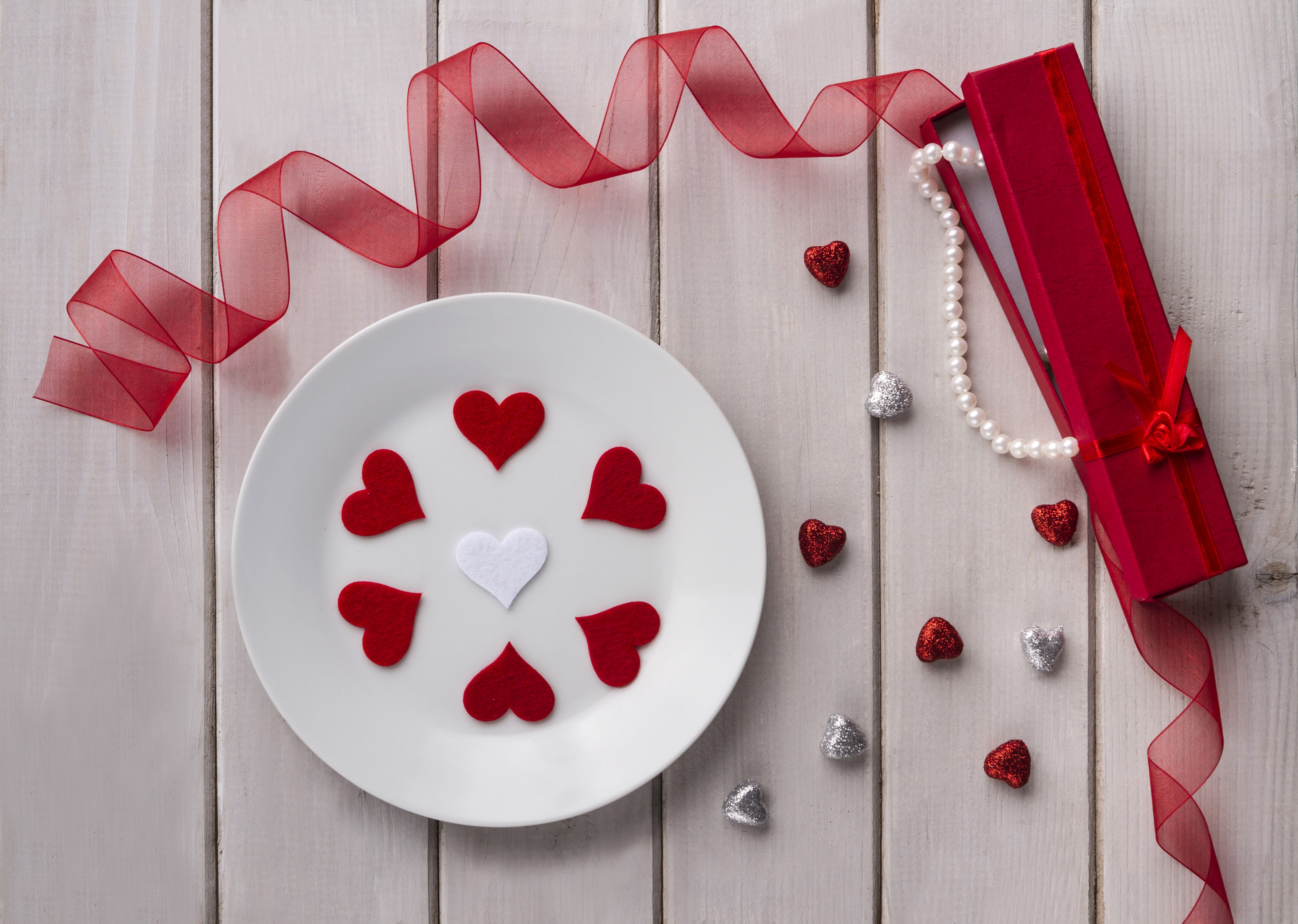 Edytor tapety: Biały talerz, Wstążka, Białe perły