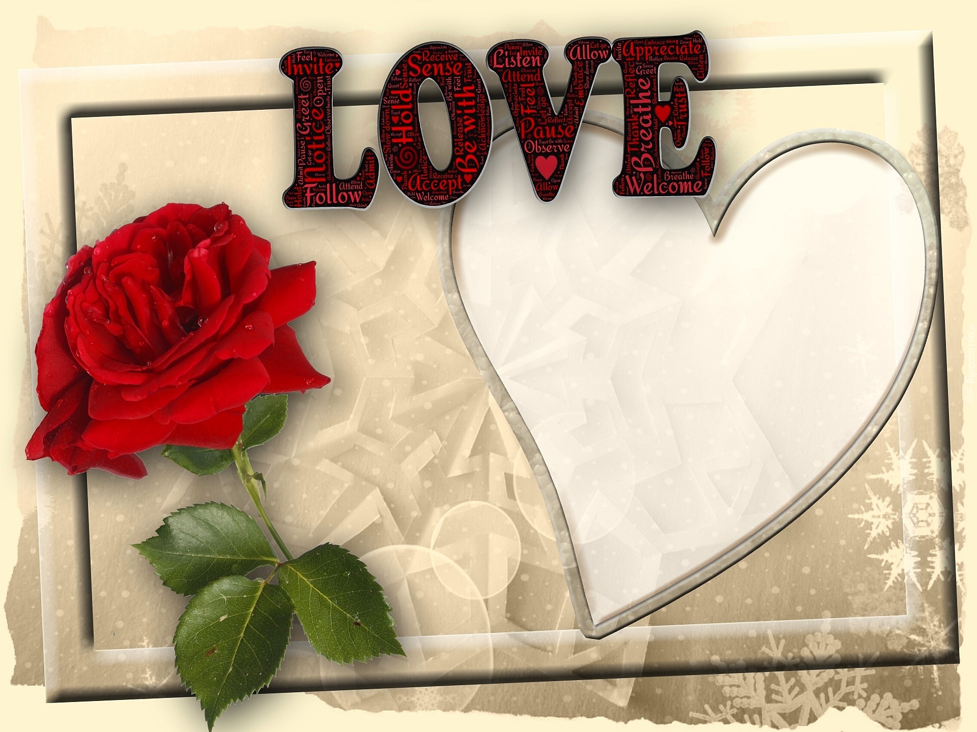 Edytor tapety: Walentynki, Kartka, Róża, Serce, Love