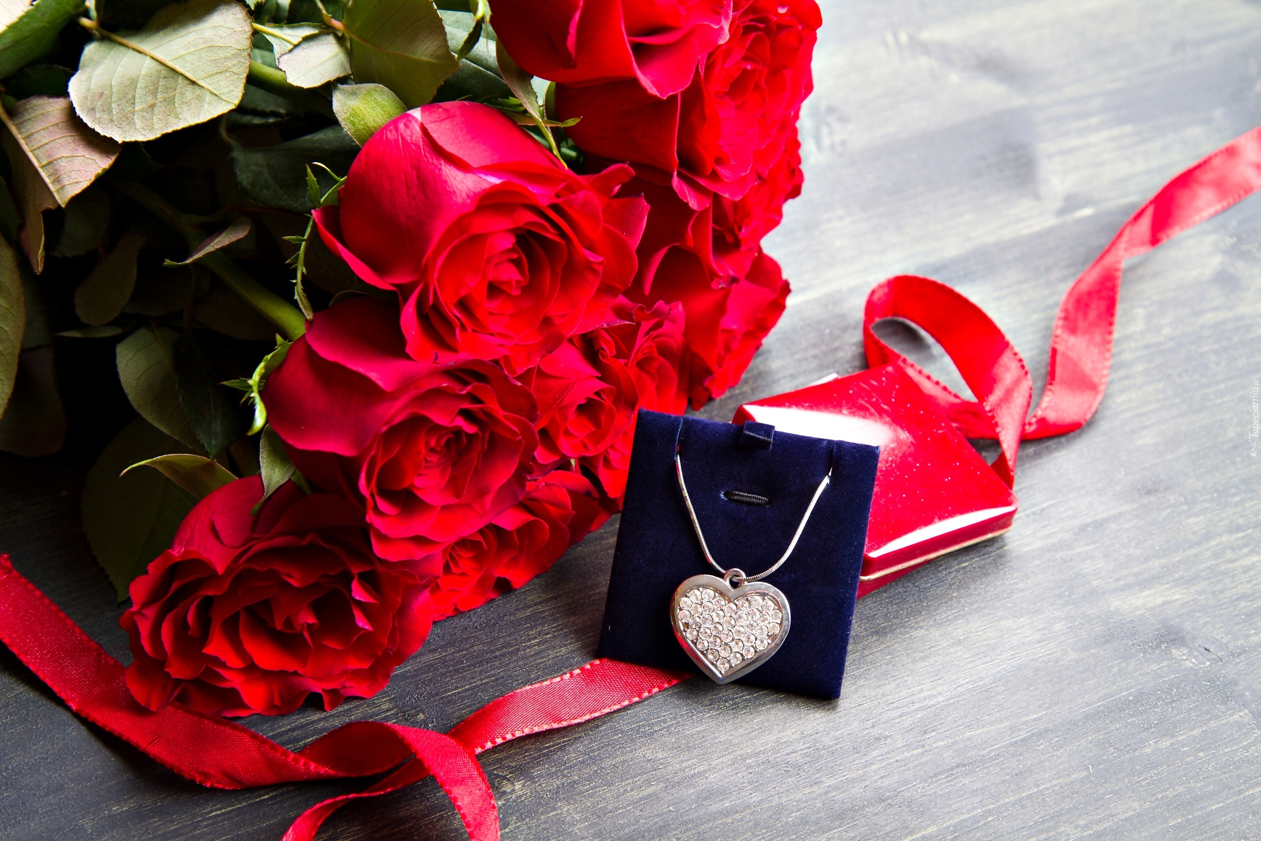 Edytor tapety: Czerwone, Róże, Wstążka, Walentynki
