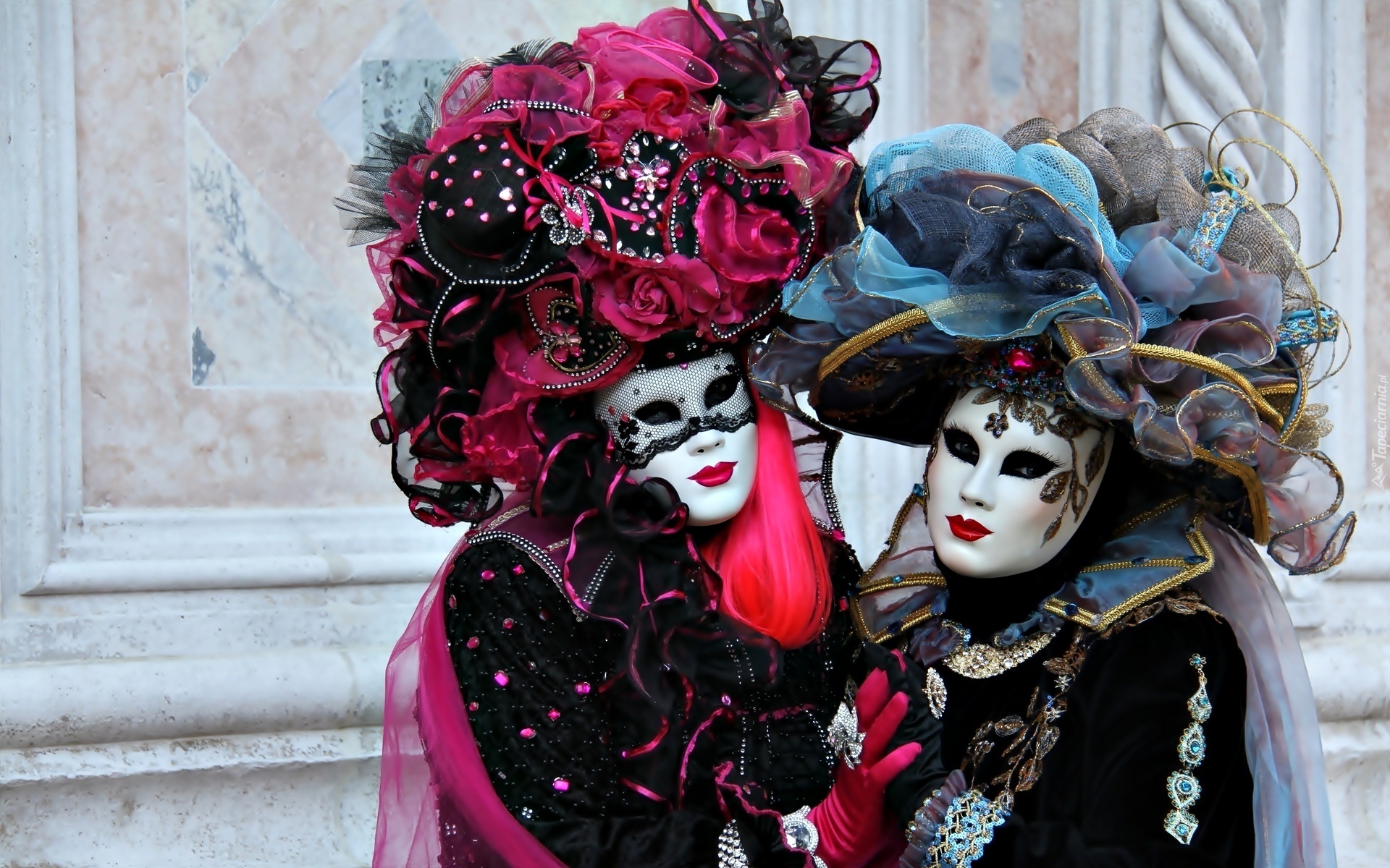 Edytor tapety: Dwie, Kobiety, Maski, Weneckie