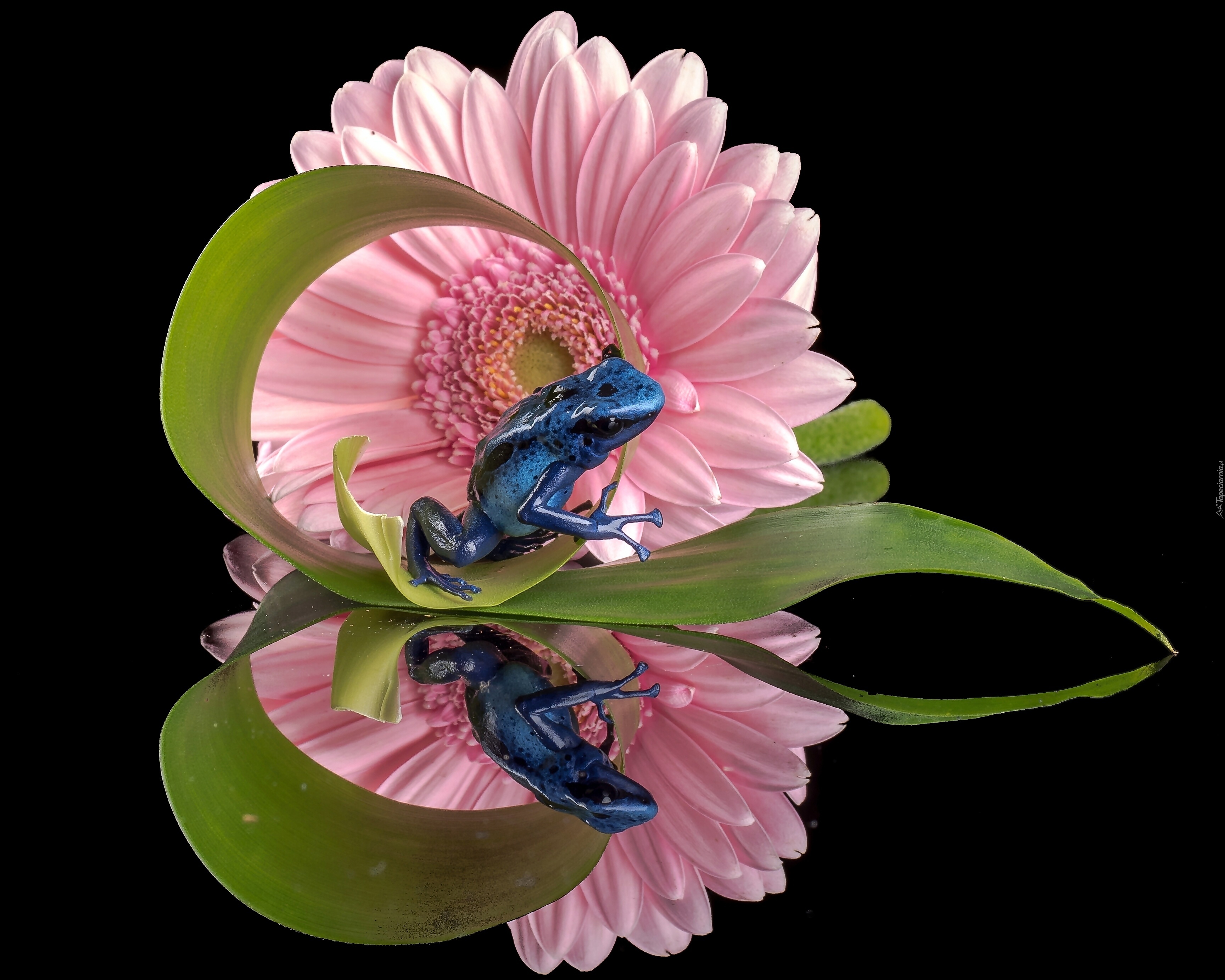 Edytor tapety: Żabka, Drzewołaz, Gerbera, Odbicie