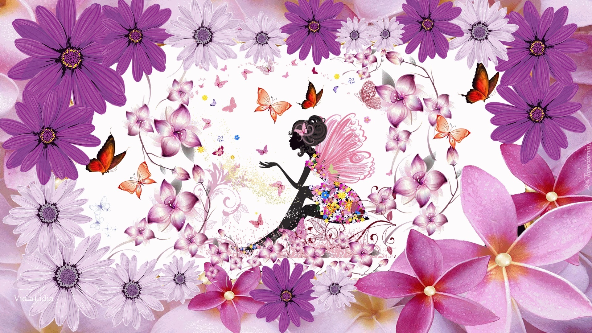Edytor tapety: Wiosna, Kwiaty, Motyle, Grafika, Elf