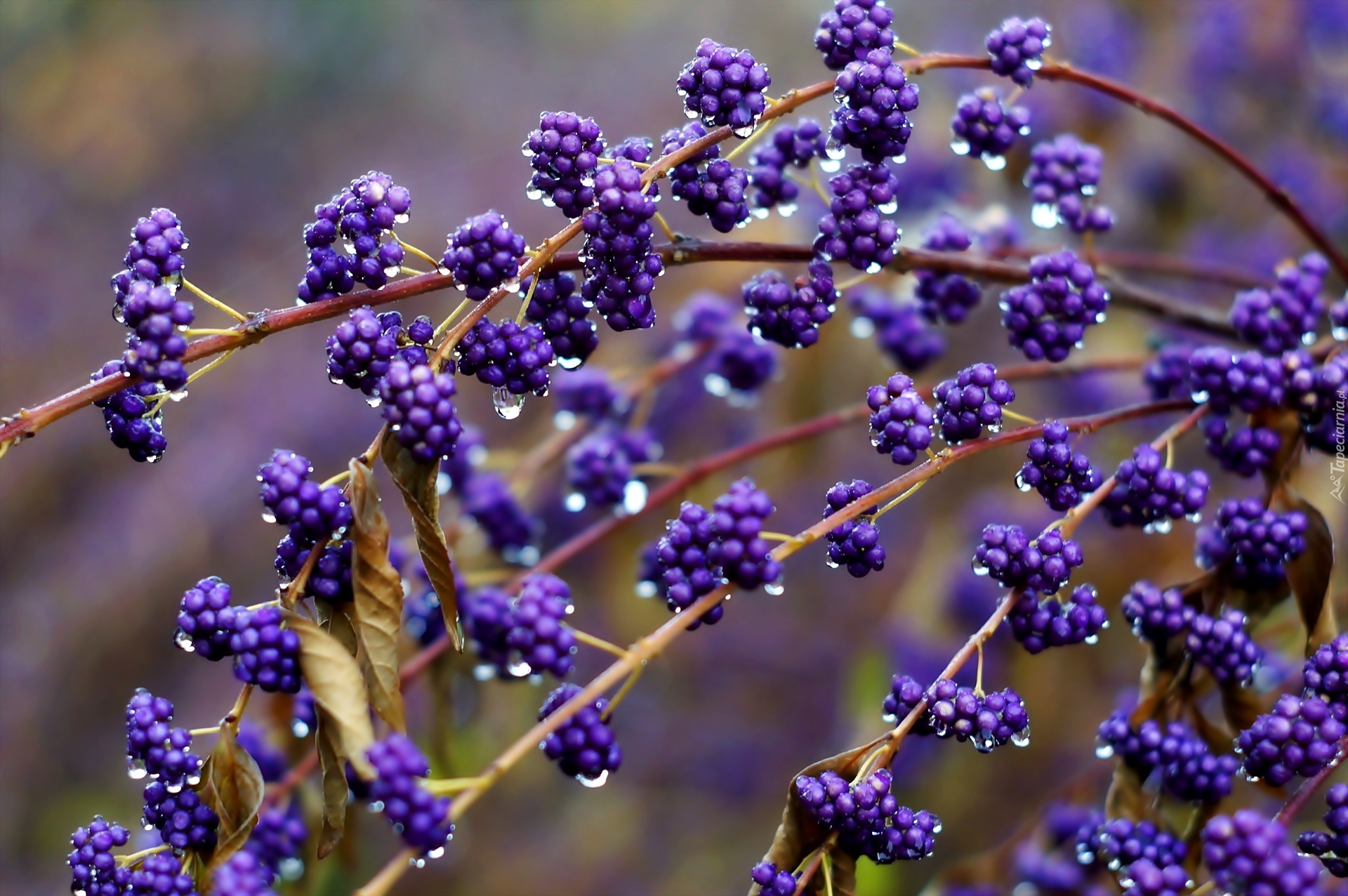 Edytor tapety: Makro, Fioletowe, Jagody, Gałązki, Krople