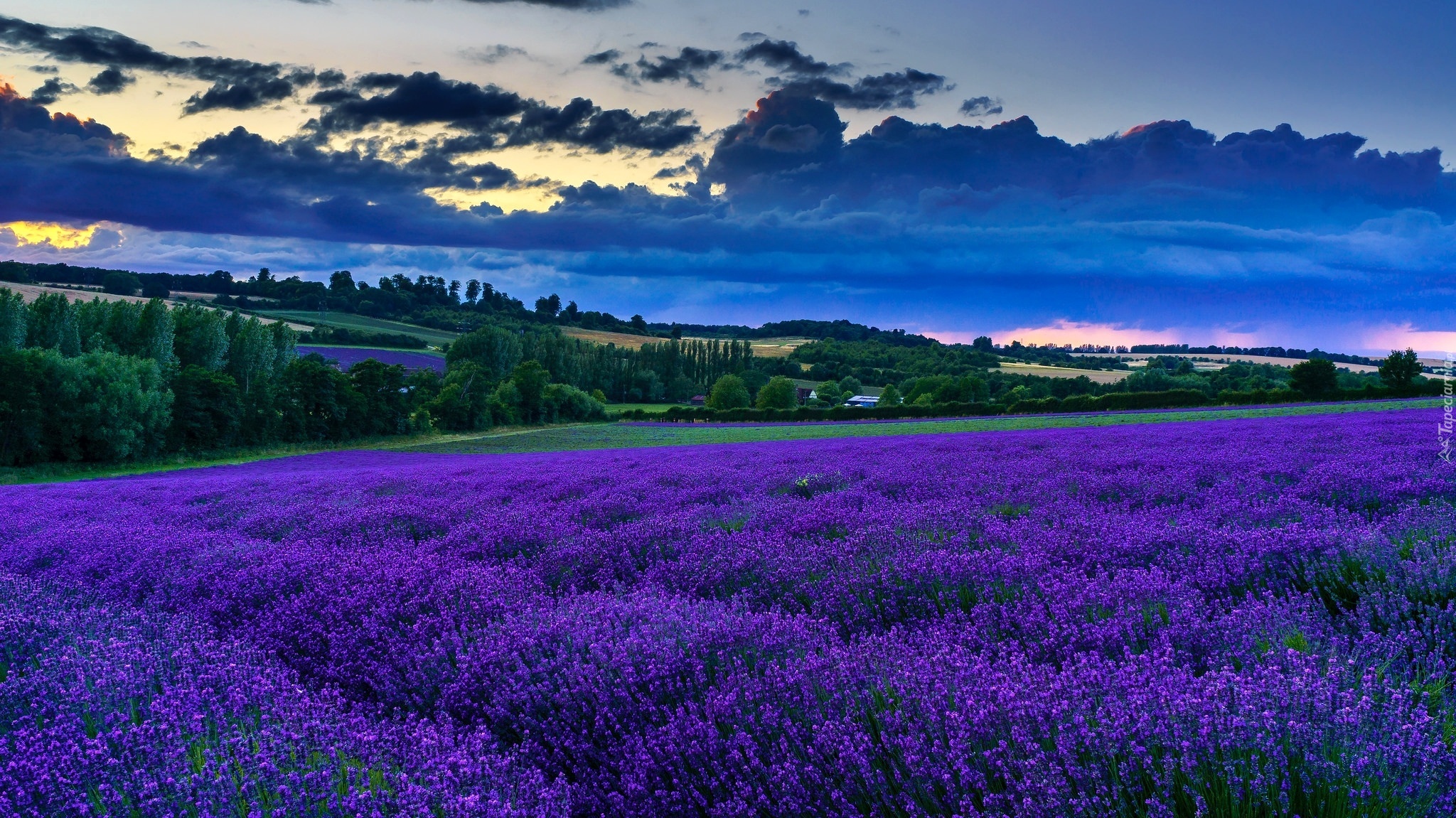 Edytor tapety: Wzgórze, Łąka, Lawenda, Drzewa, Chmury