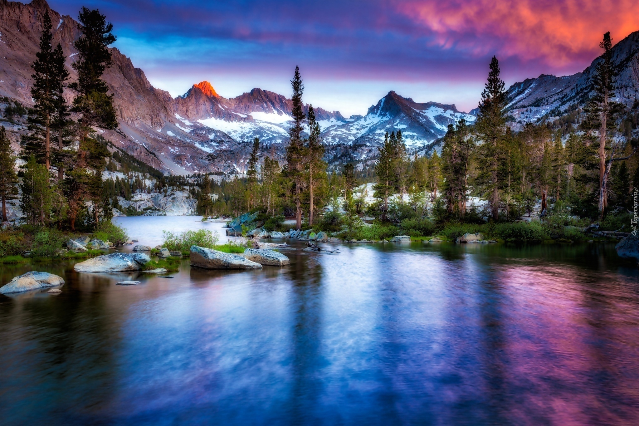 Edytor tapety: Zima, Góry, Las, Rzeka, Kamienie
