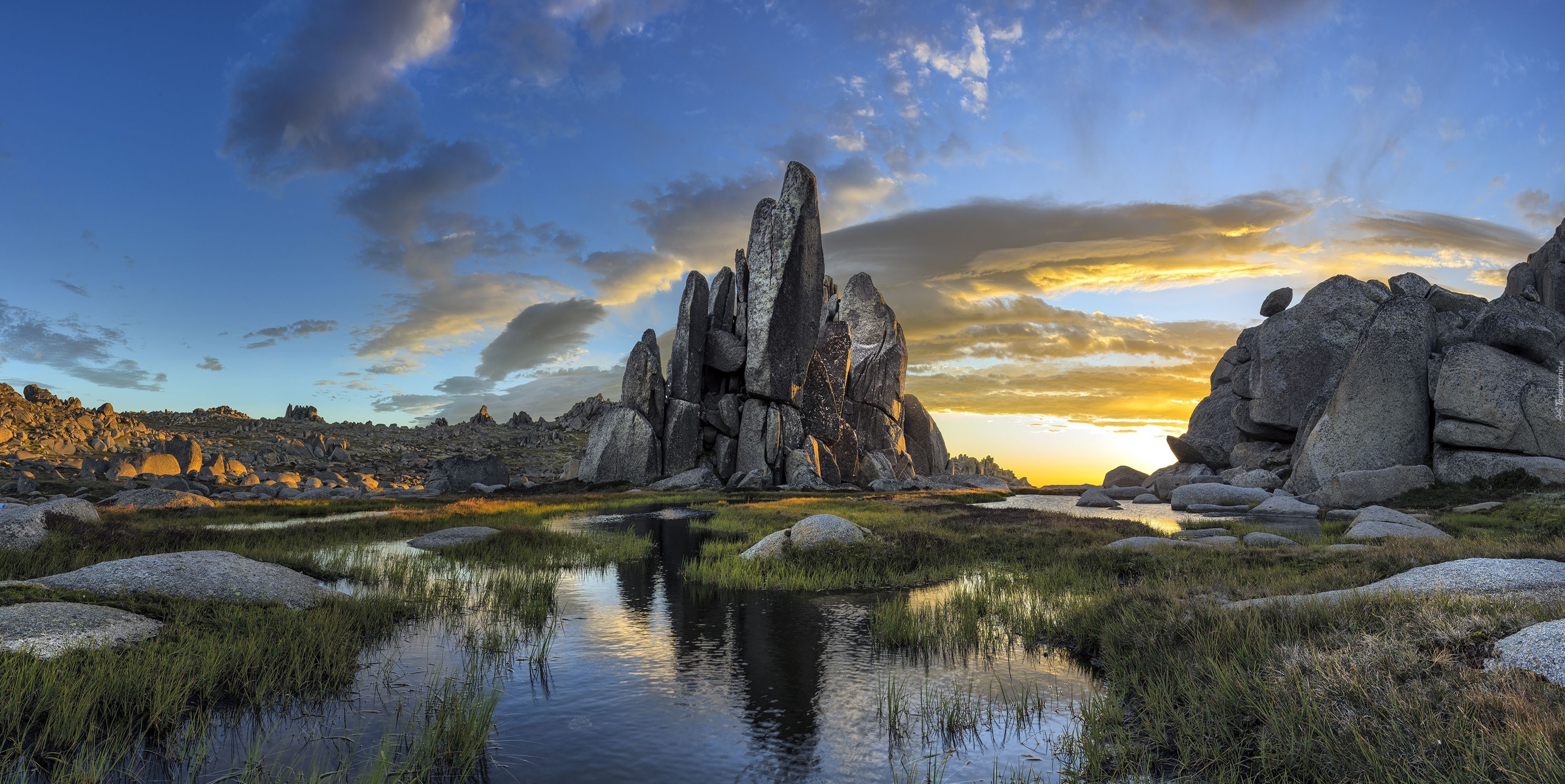 Edytor tapety: Zachód, Słońca, Skały, Bagno