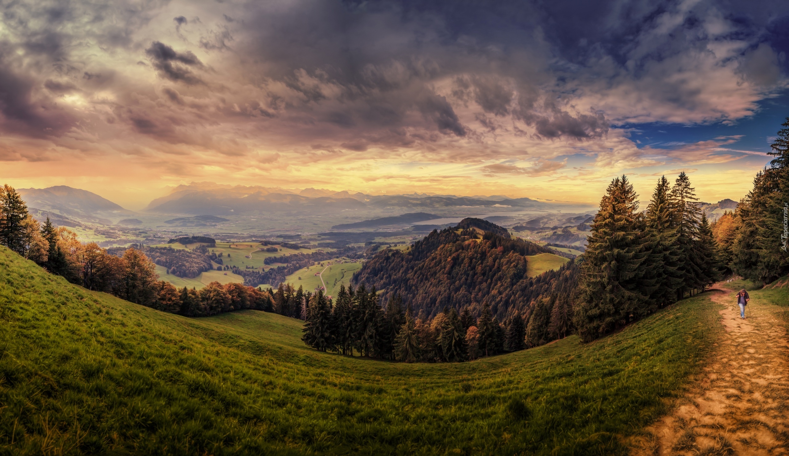 Edytor tapety: Las, Łąka, Trawa, Chmury, Szwajcaria
