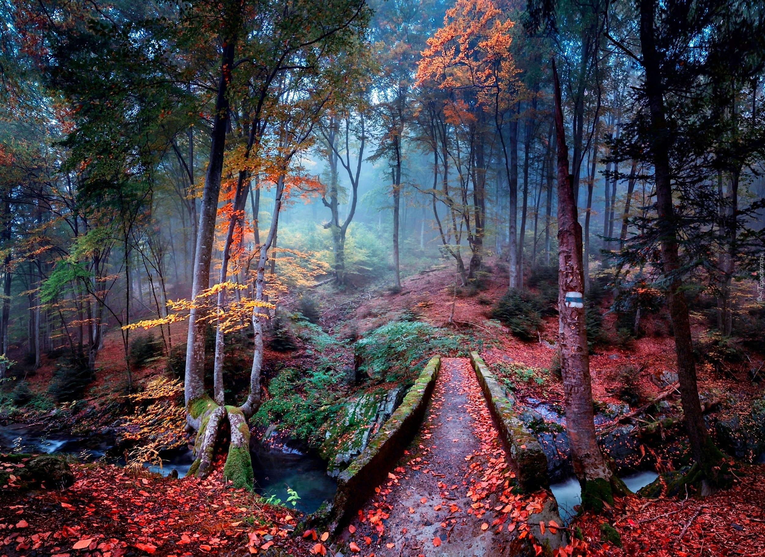 Edytor tapety: Las, Strumyk, Mostek, Poranek, Mgła