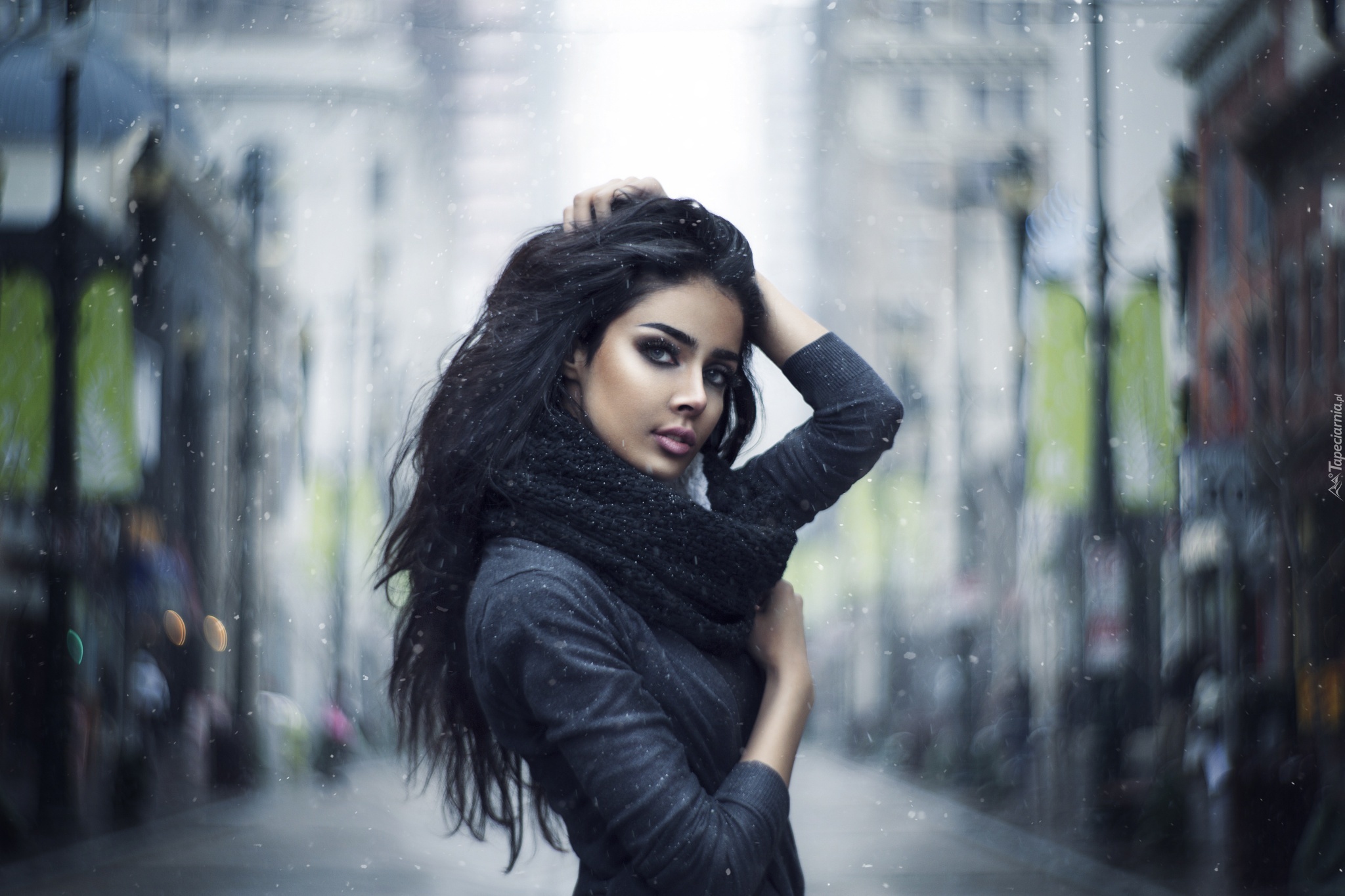 Edytor tapety: Kobieta, Rozmyte, Tło, Budynki