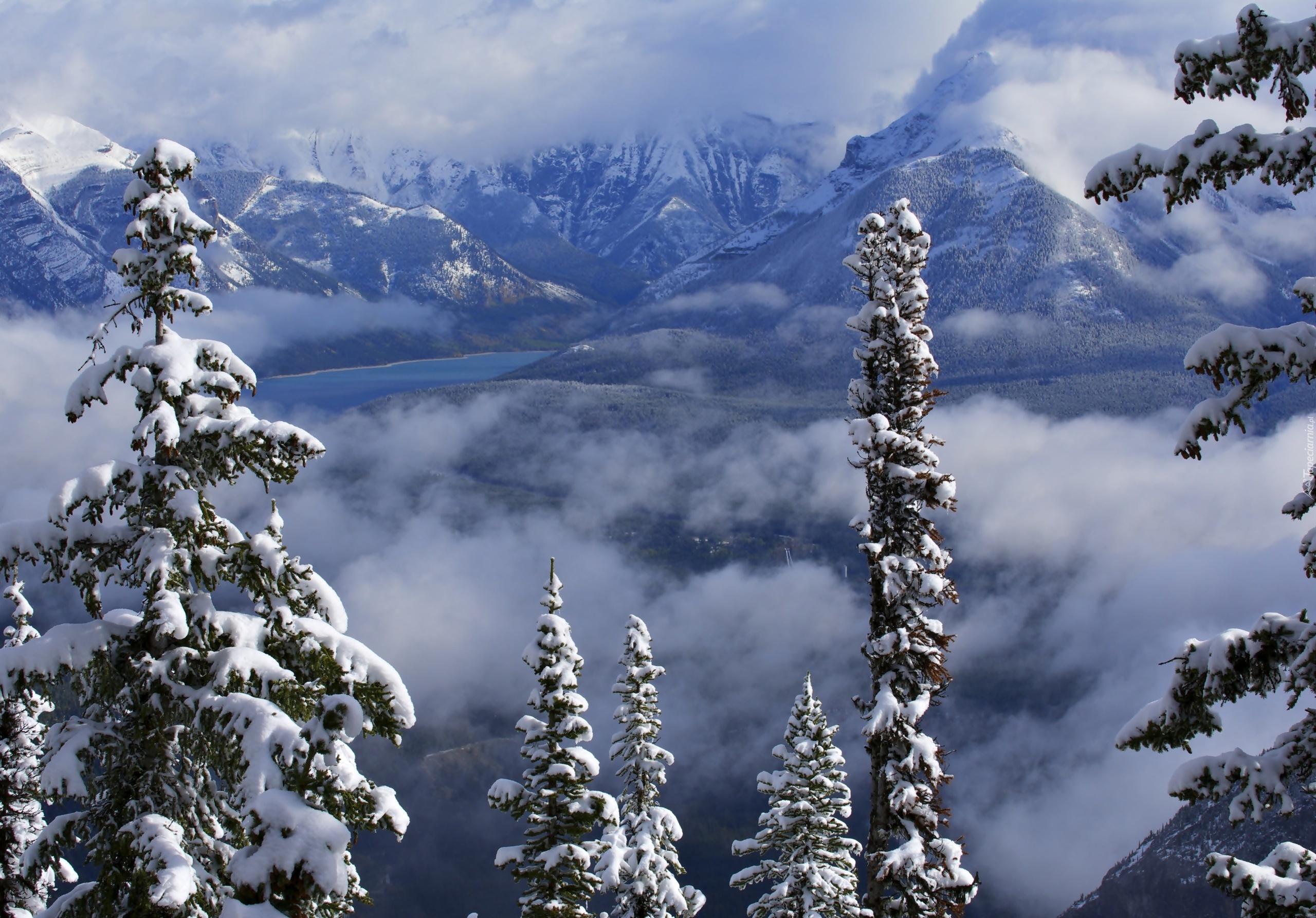 Edytor tapety: Zima, Góry, Mgła, Ośnieżone, Drzewa