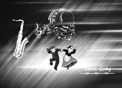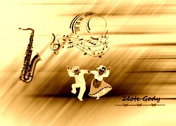 Edytor tapety: Jubileusz, Złote, Gody, Grafika, Saksofon, Nutki, Nuty, Babcia, Dziadek