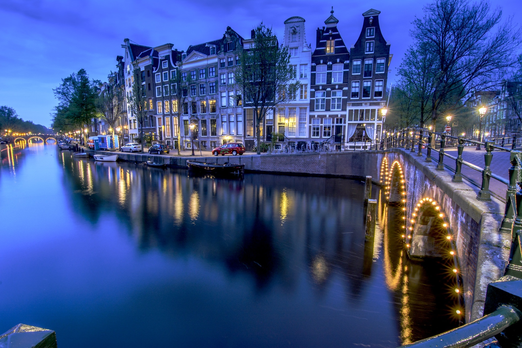 Edytor tapety: Amsterdam, Kanał, Most, Kamienice