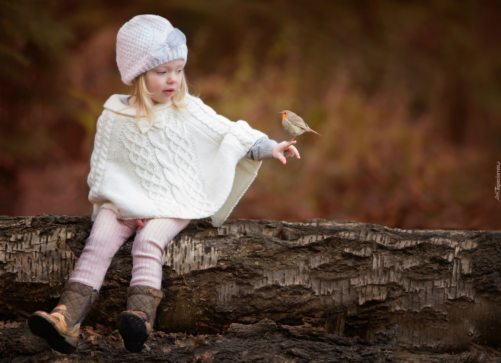 Edytor tapety: Dziewczynka, Drzewo, Mały, Ptaszek