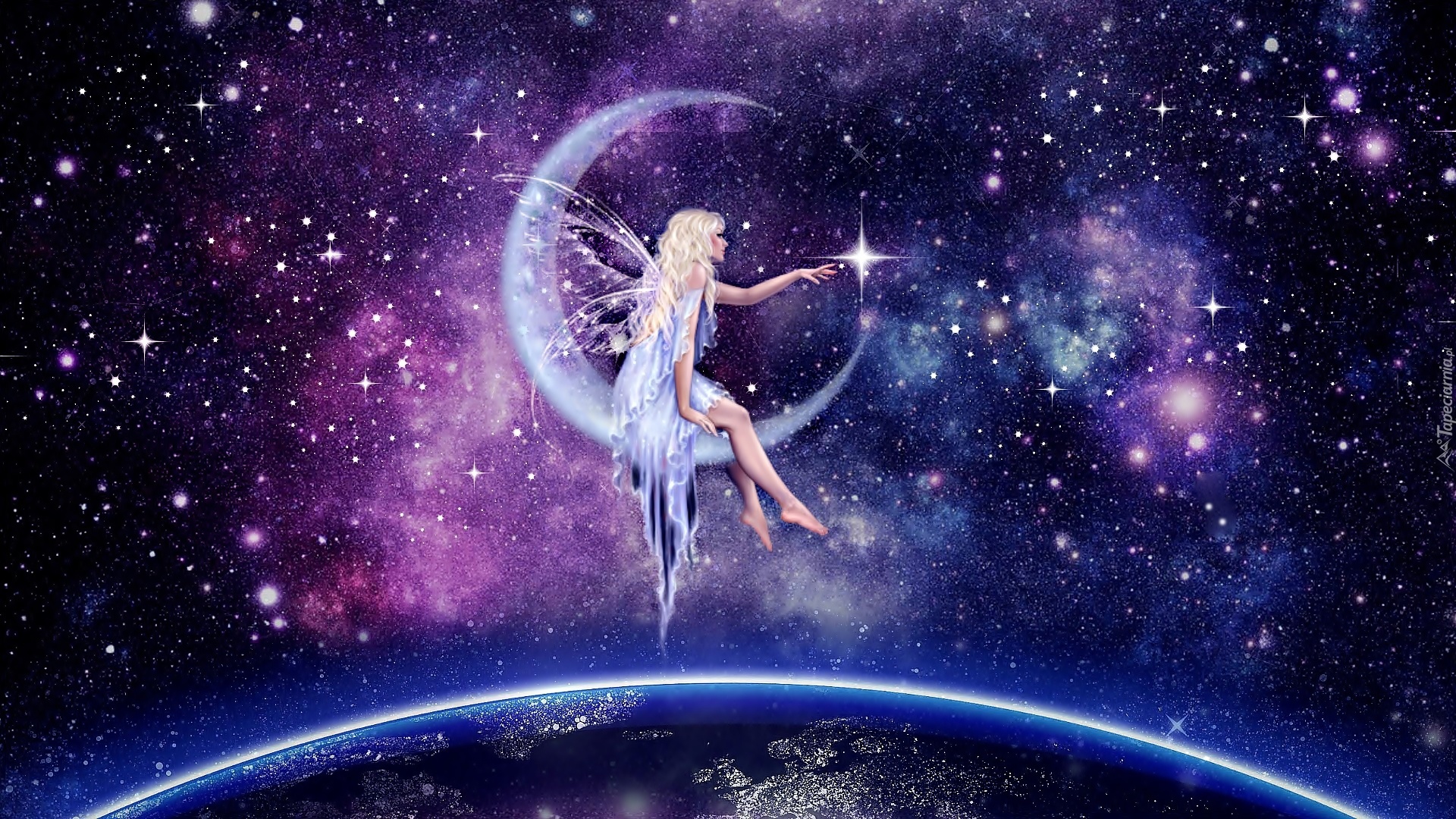 Edytor tapety: Fantasy, Galaktyka, Kobieta, Księżyc