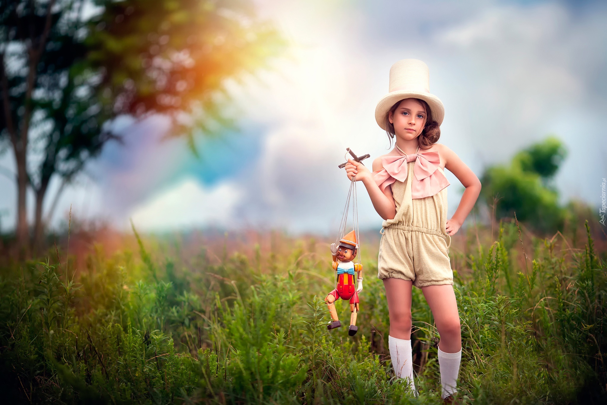 Edytor tapety: Dziewczynka, Marionetka, Łąka